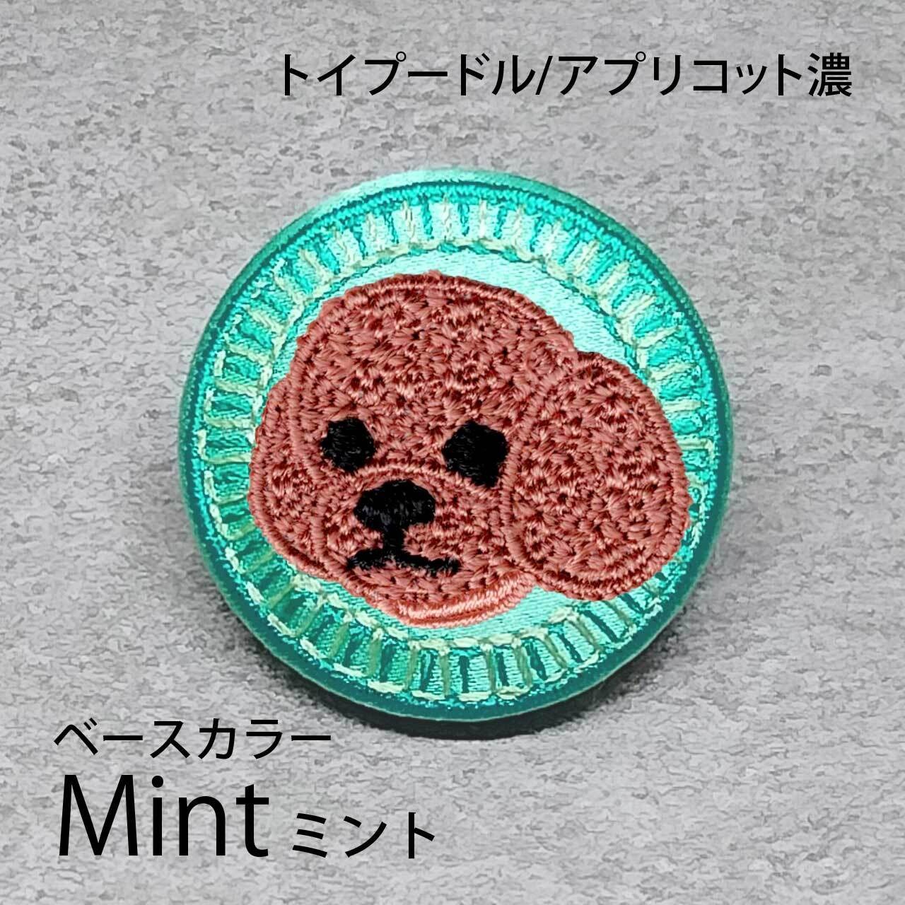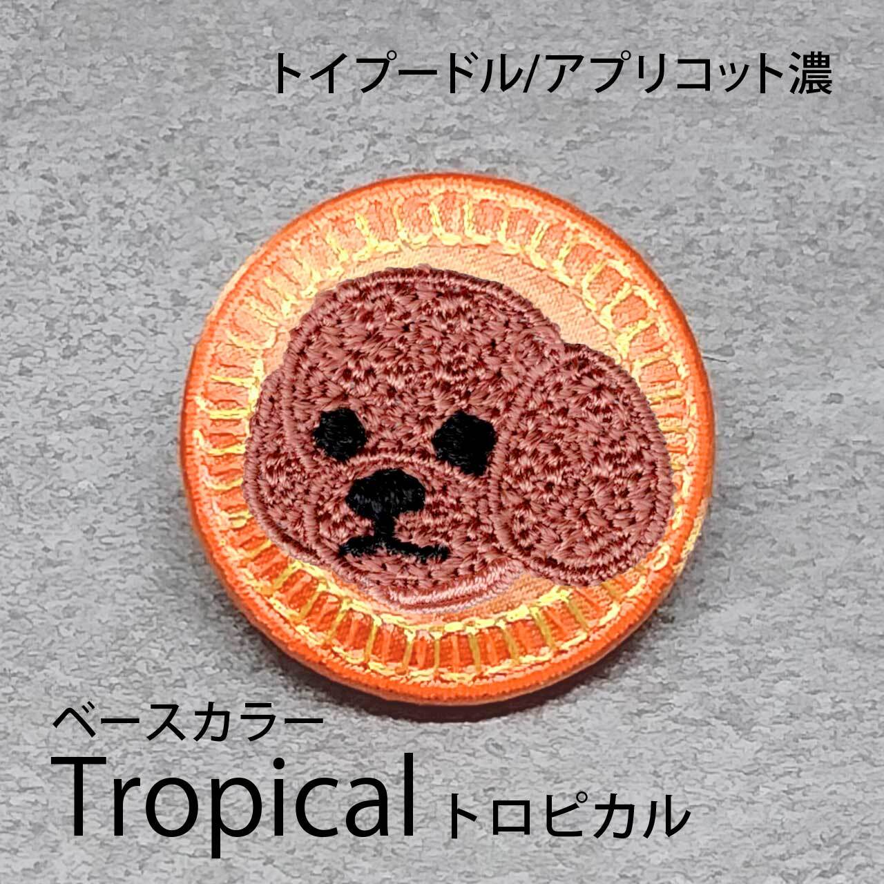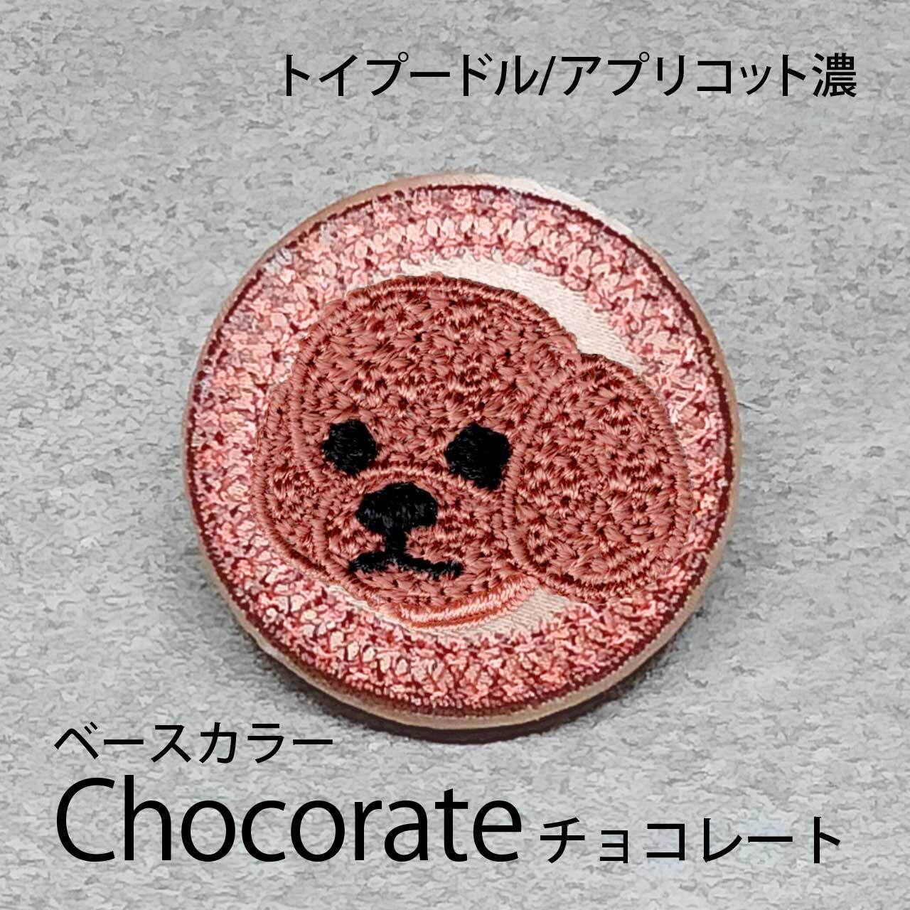 サテン生地にアプリコット濃のトイプードルを刺繍したアイテム。