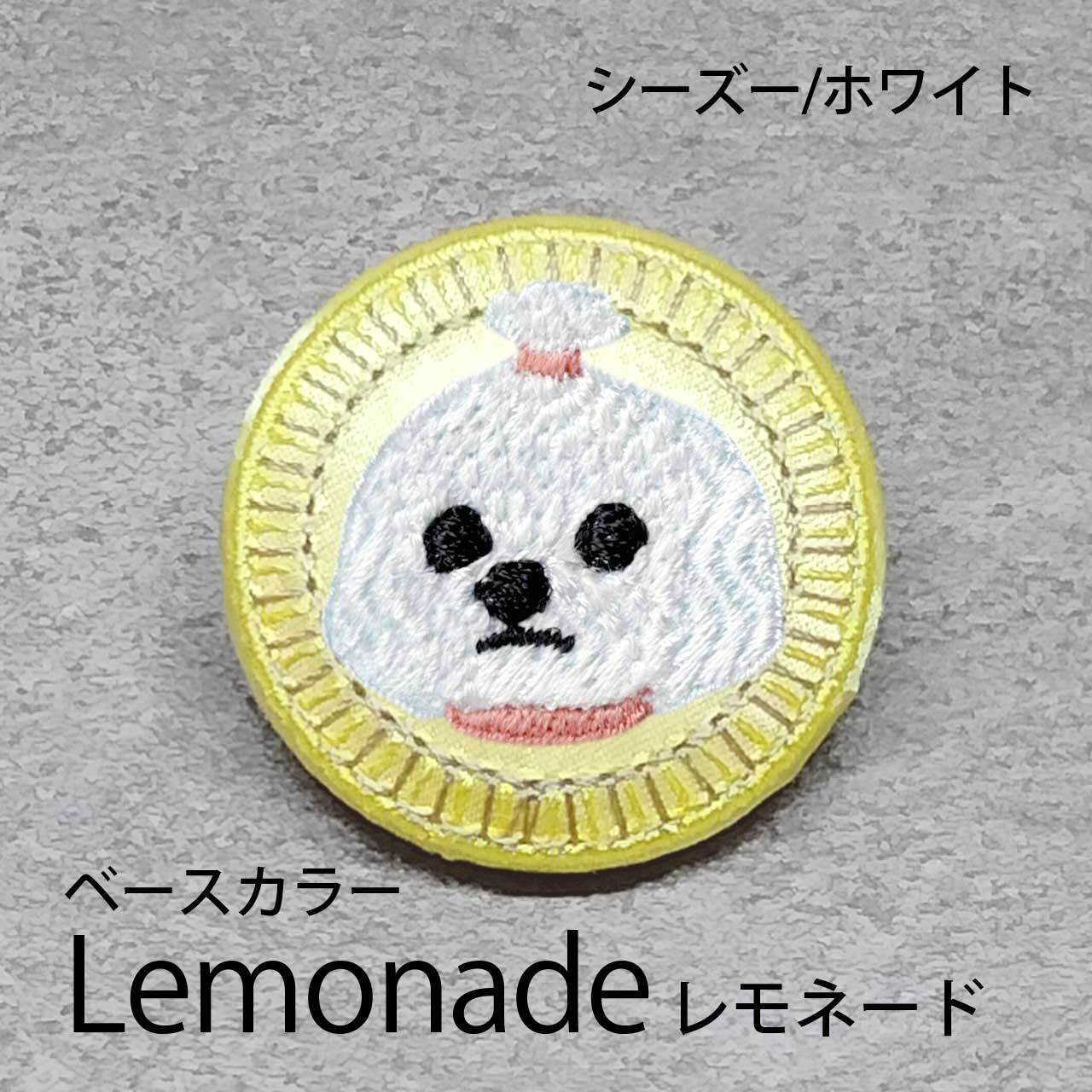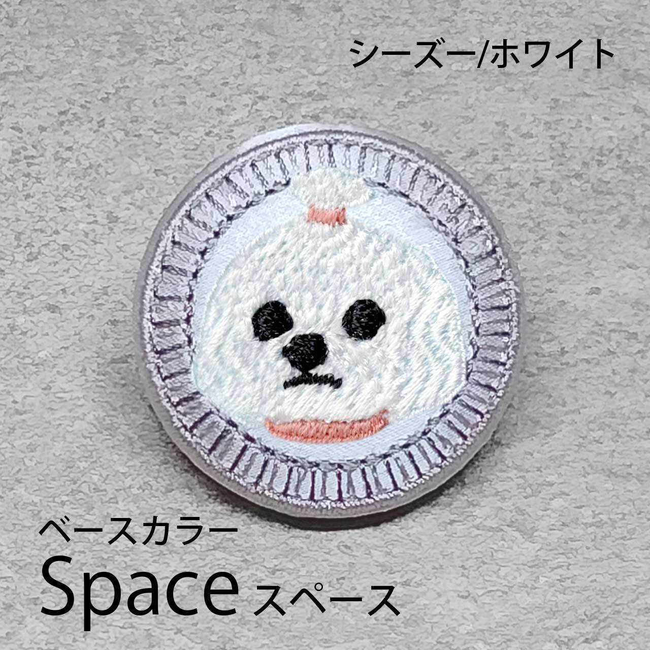 サテン生地にホワイトのシーズーを刺繍したアイテム。