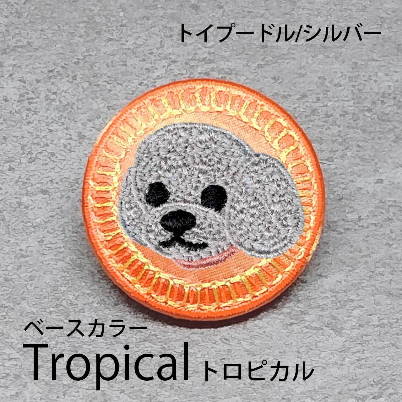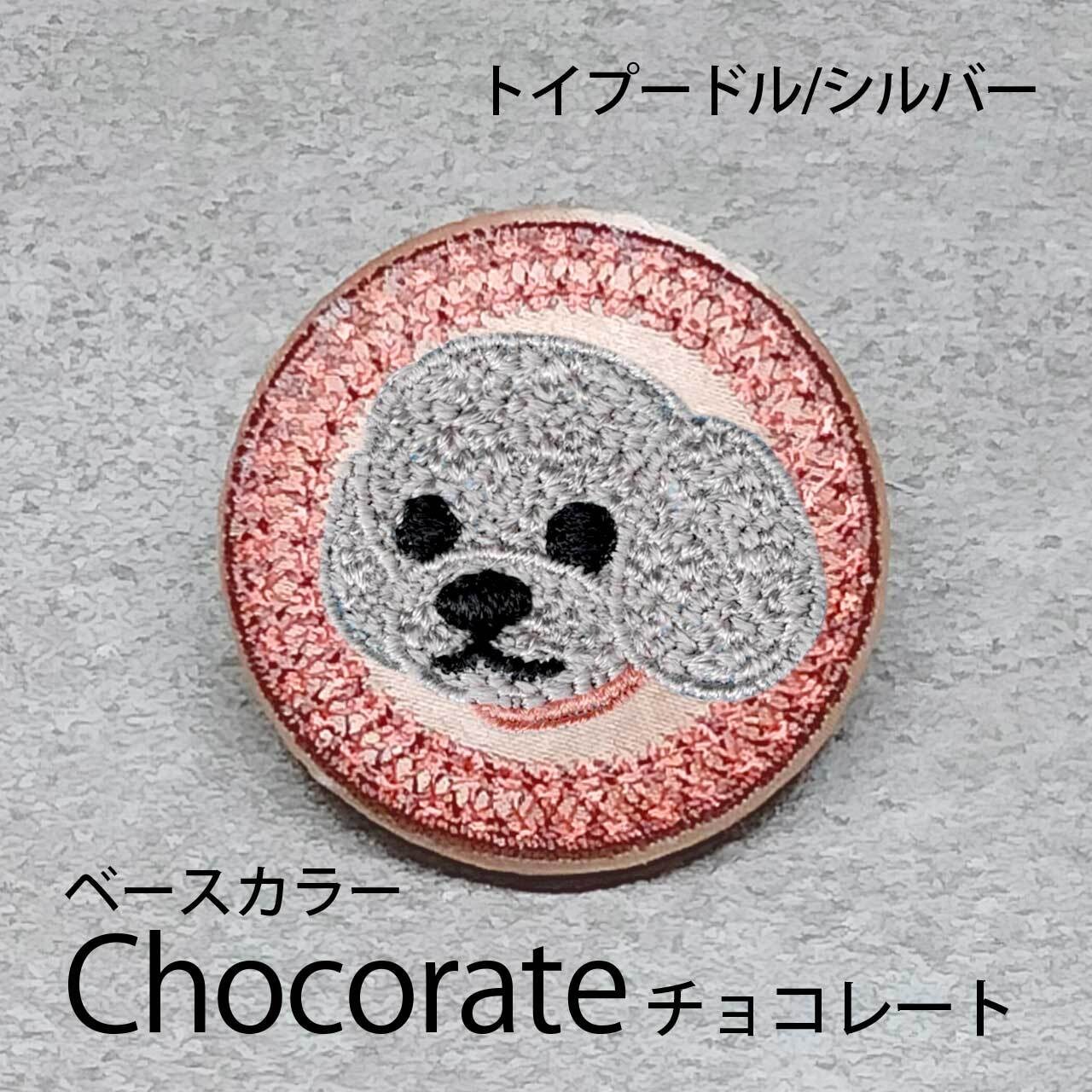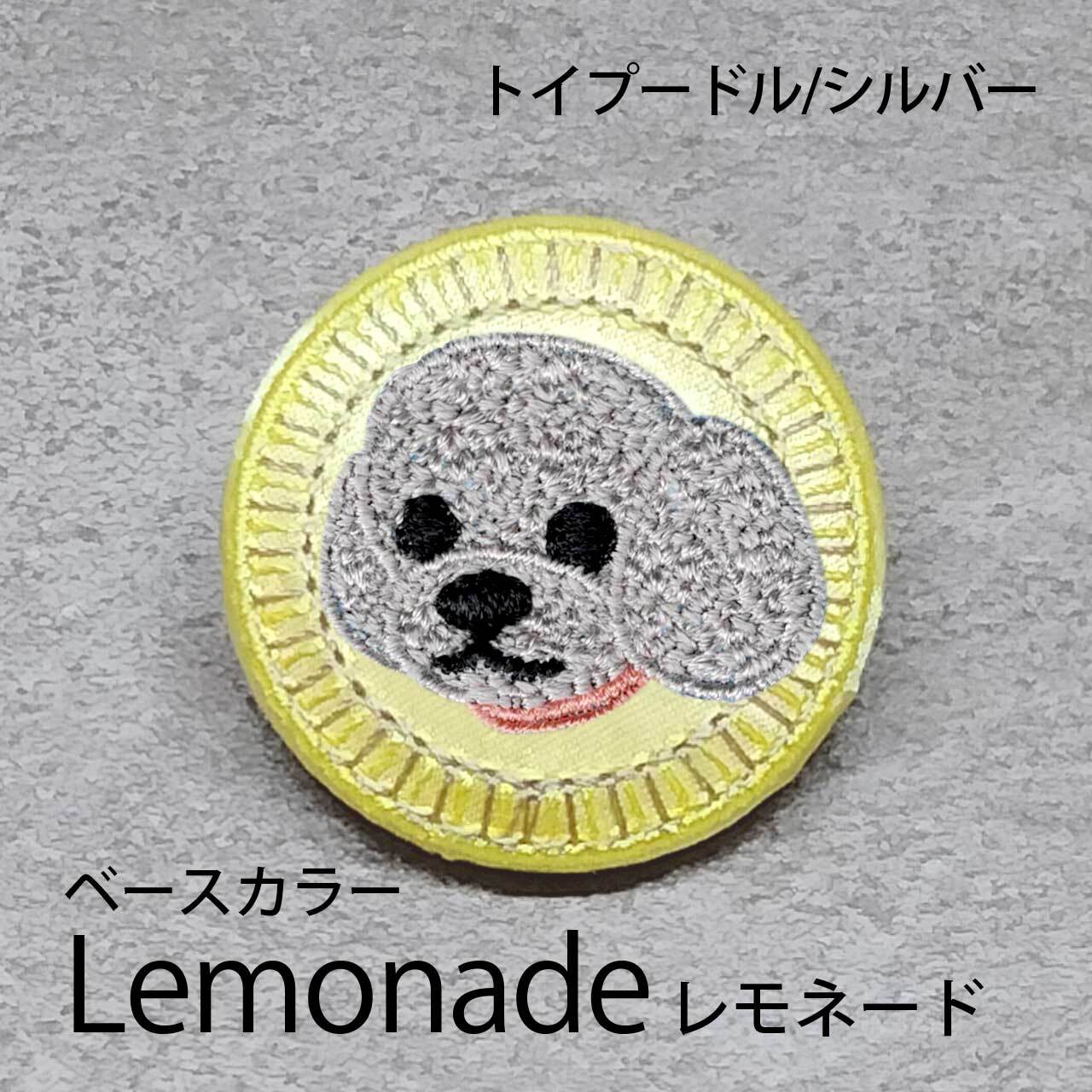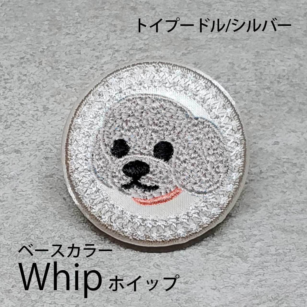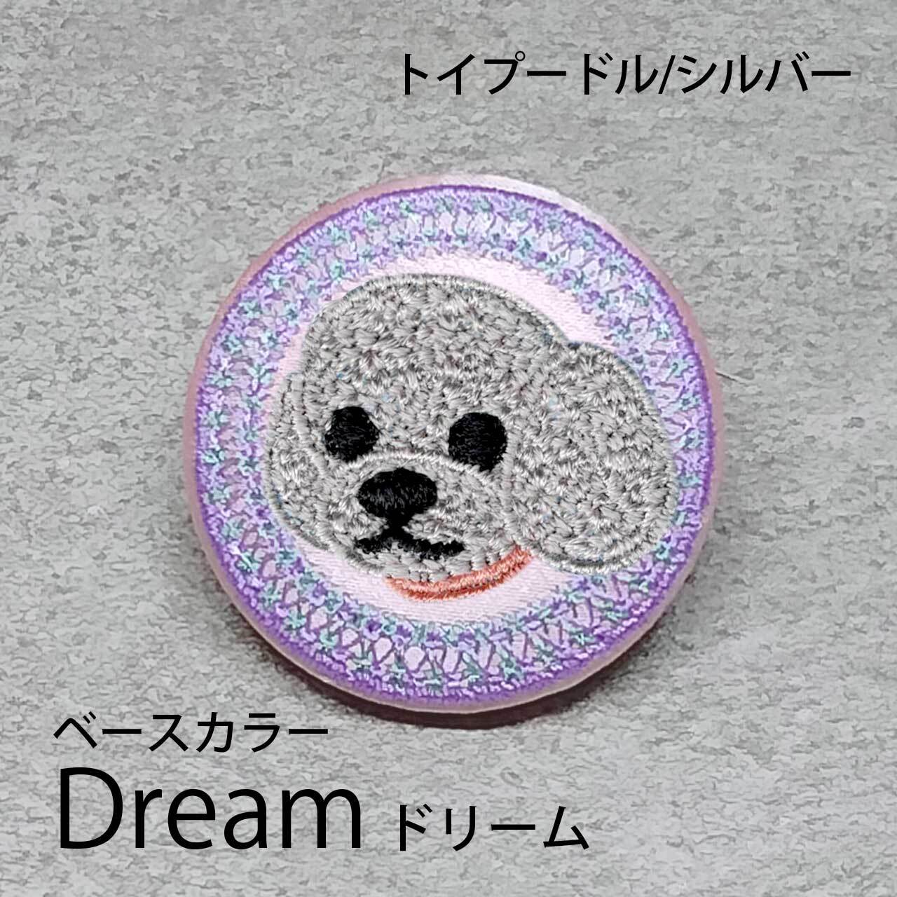 サテン生地にシルバーのトイプードルを刺繍したアイテム。