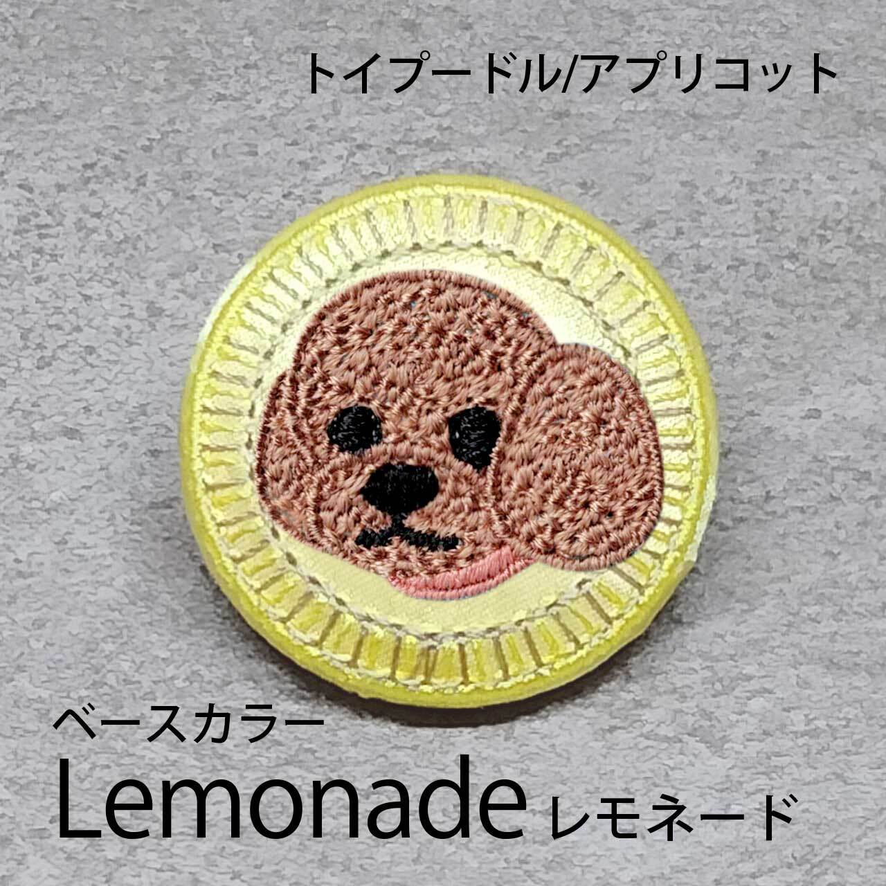 サテン生地にアプリコットのトイプードルを刺繍したアイテム。