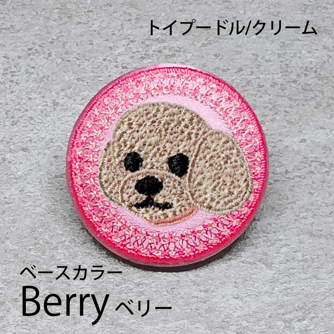 サテン生地にクリームのトイプードルを刺繍したアイテム。