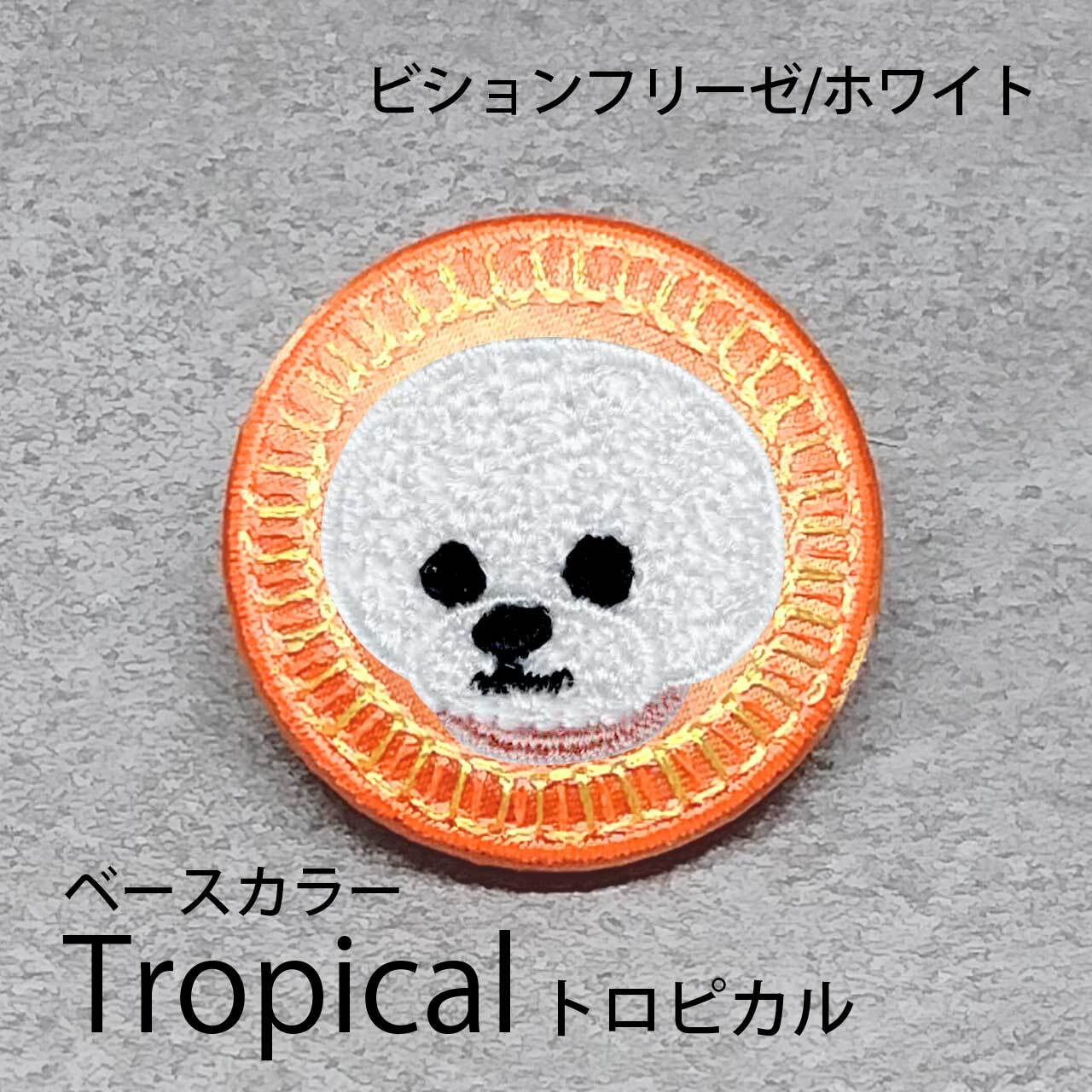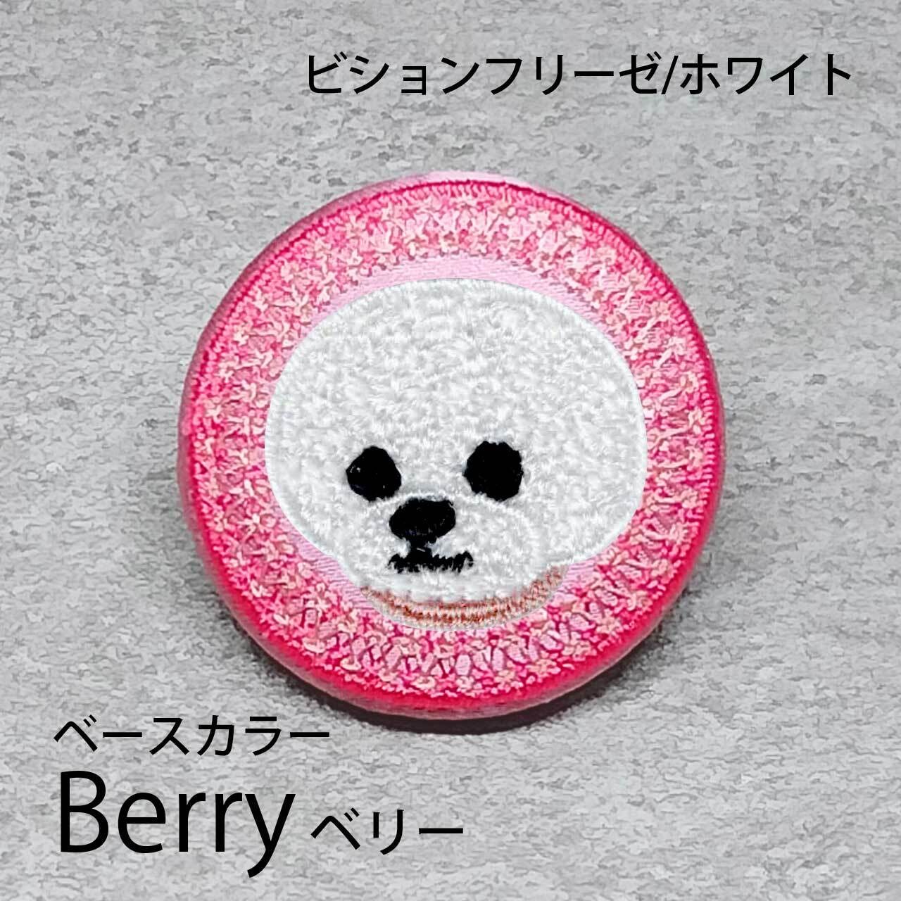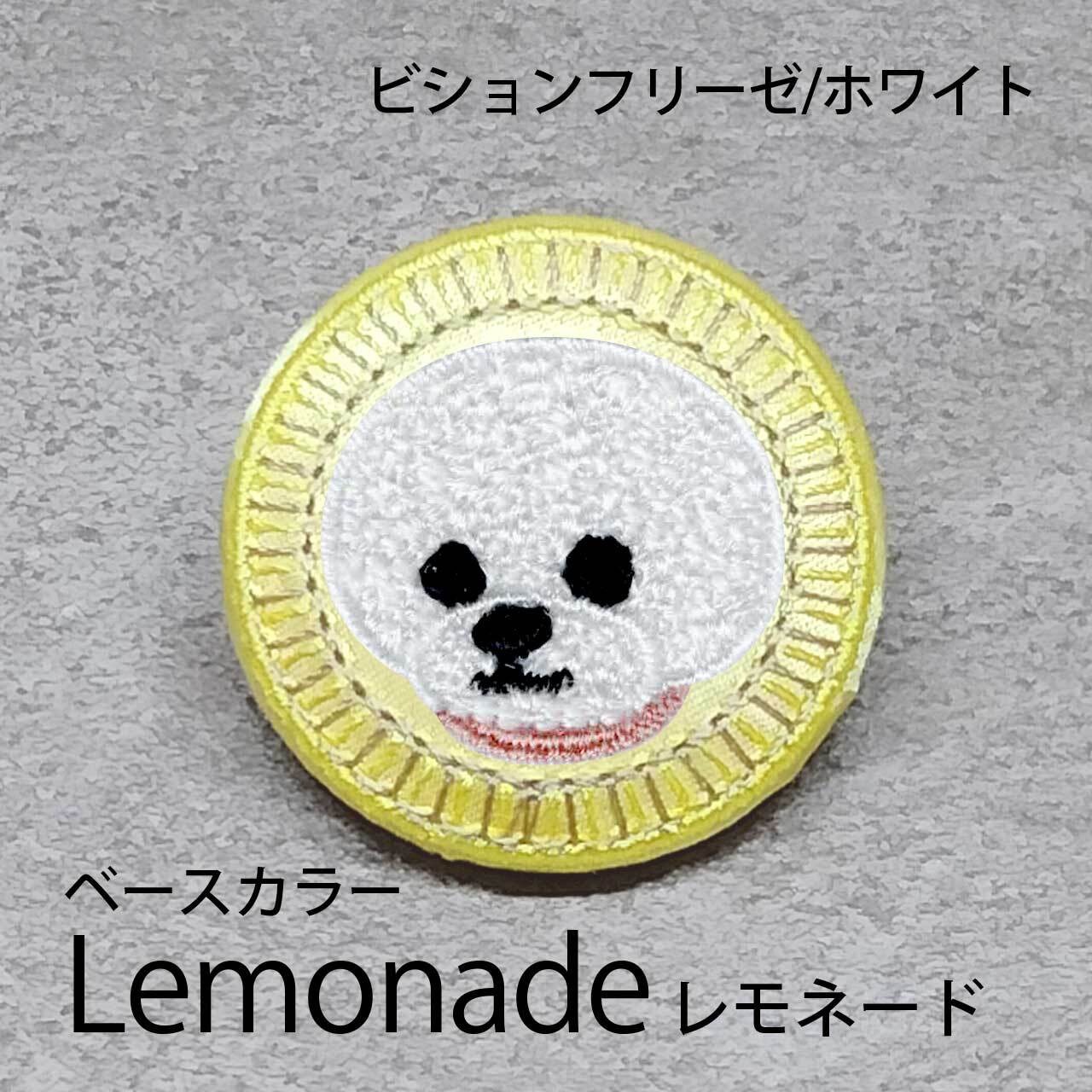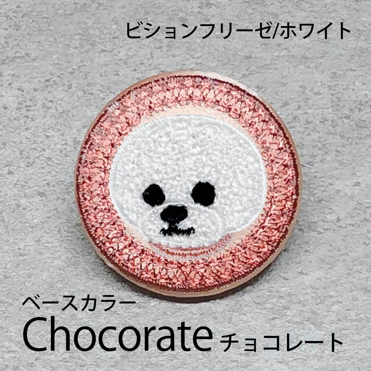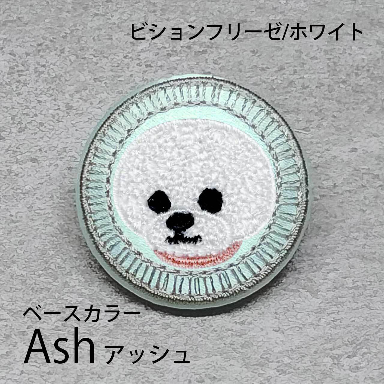 サテン生地にホワイトのビションフリーゼを刺繍したアイテム。