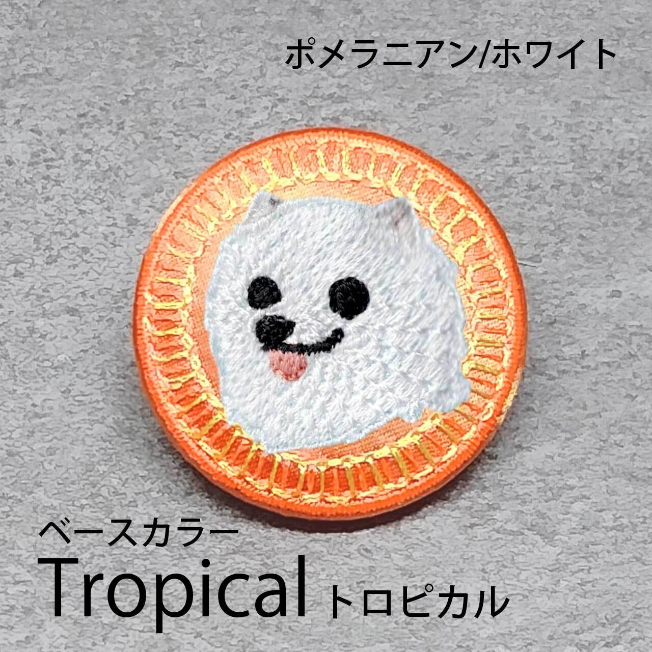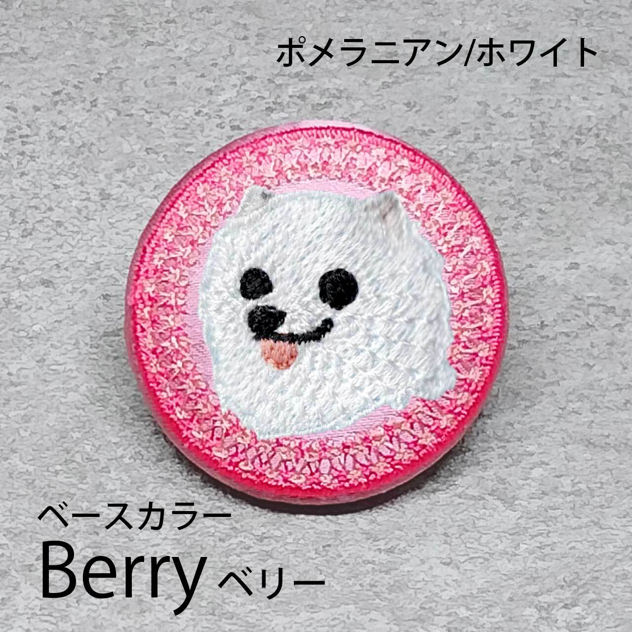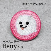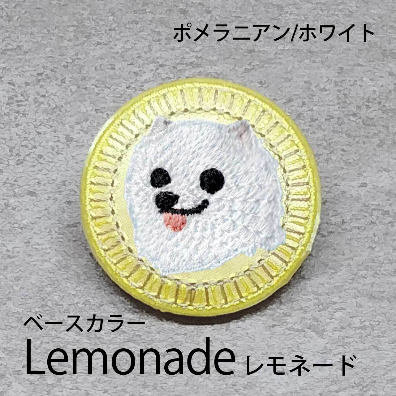 サテン生地にホワイトのポメラニアンを刺繍したアイテム。