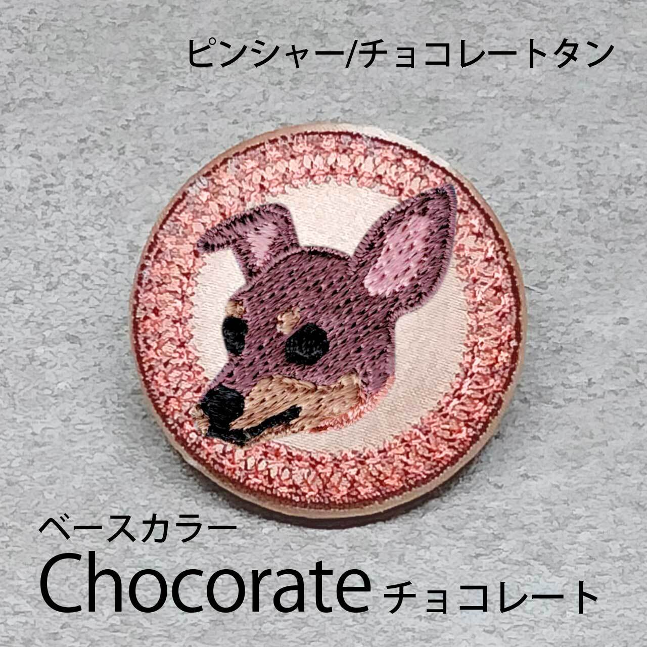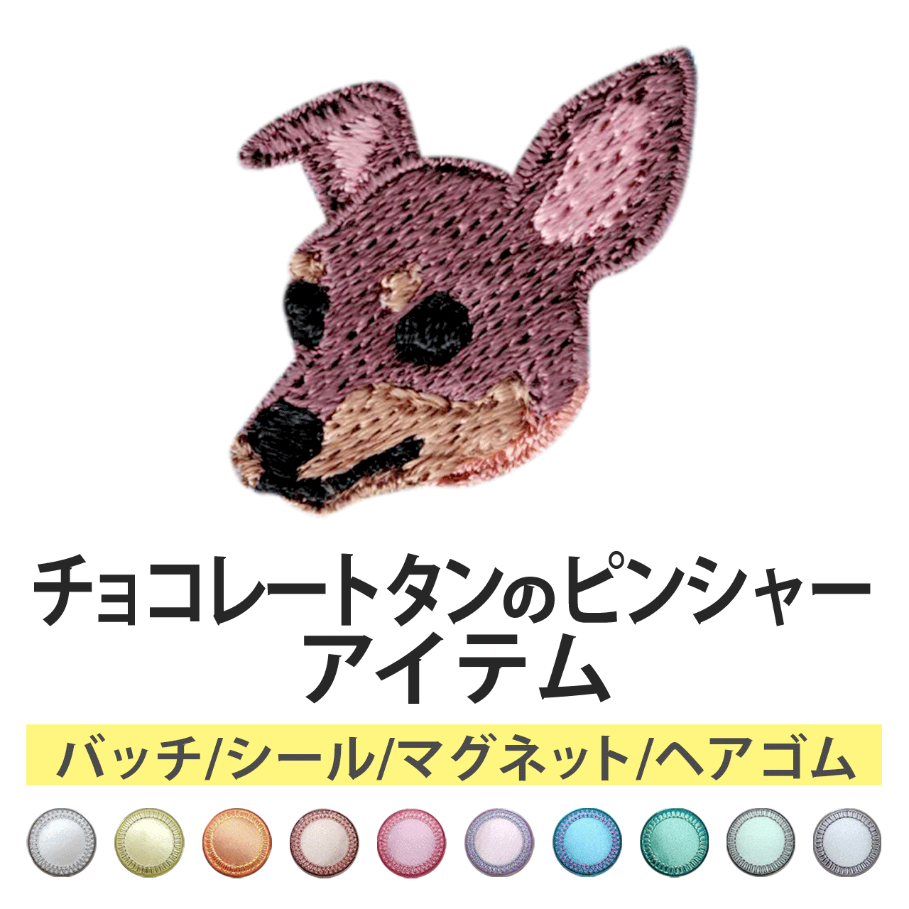 サテン生地にチョコレートタンのピンシャーを刺繍したアイテム。