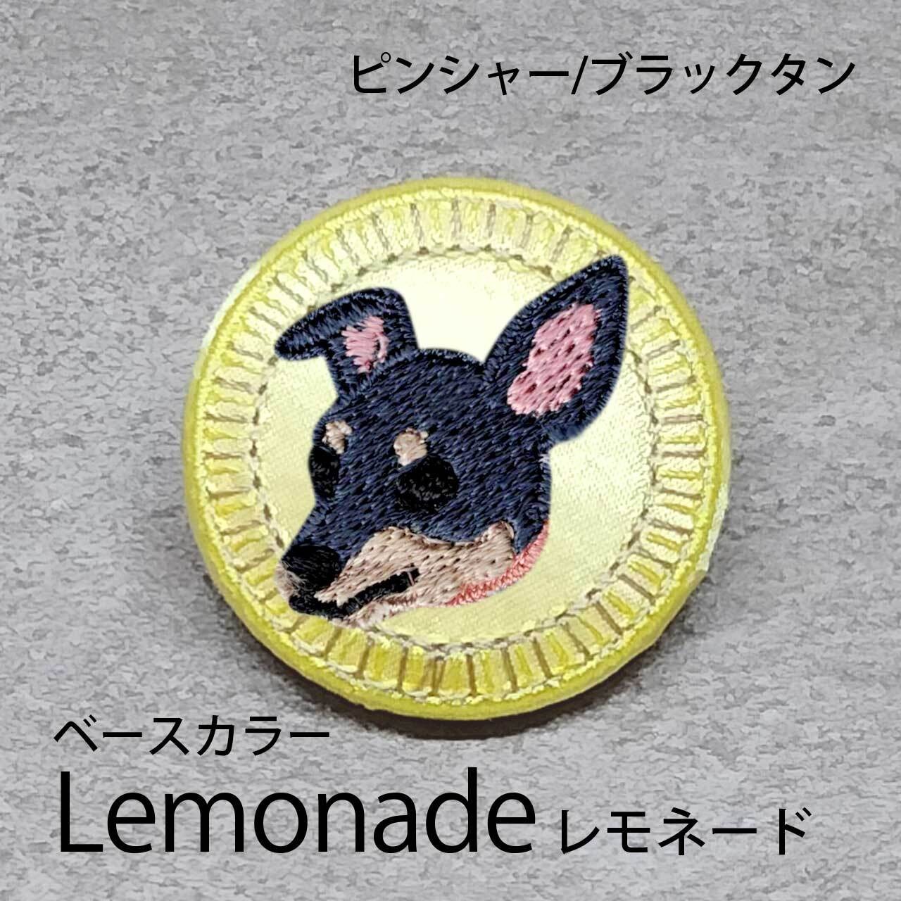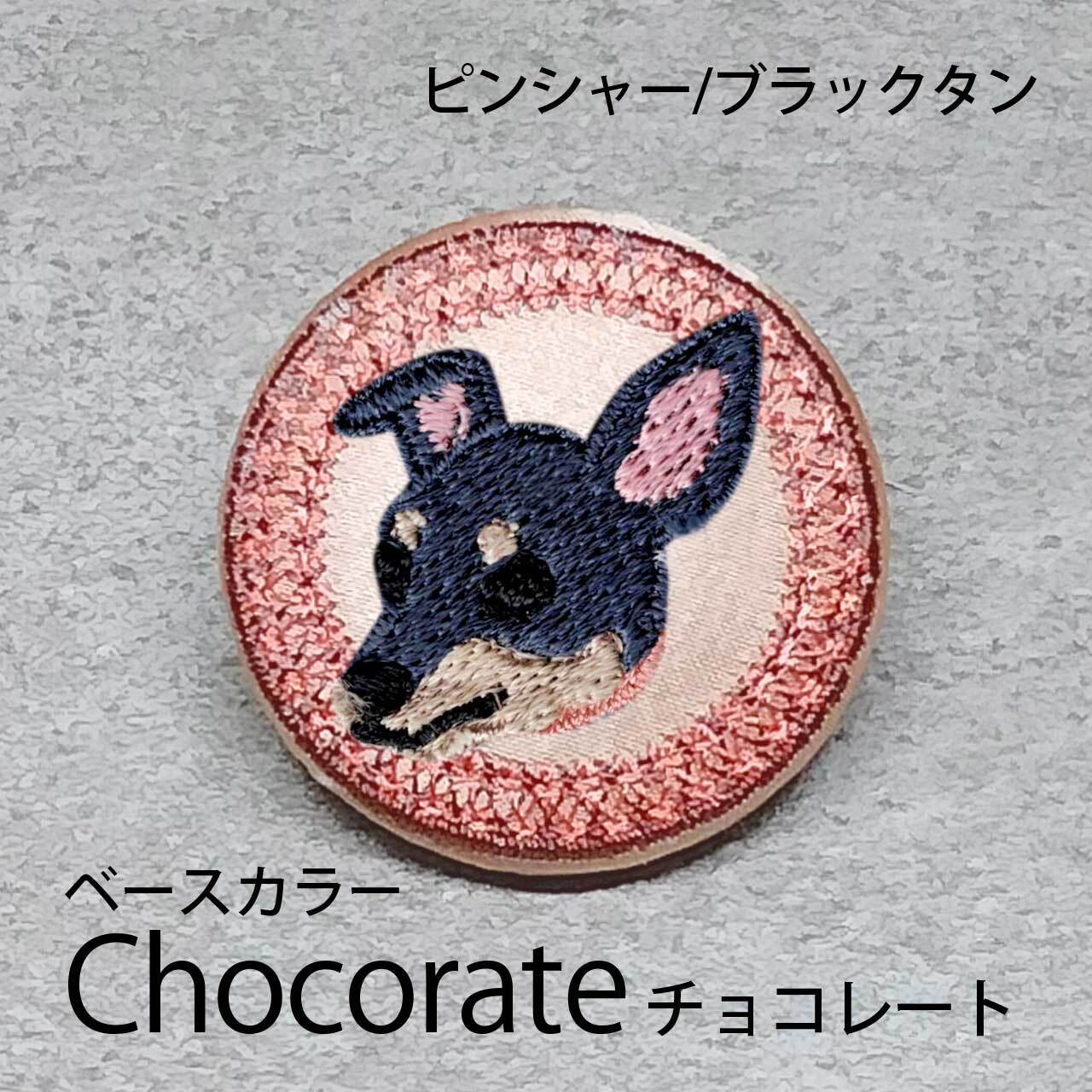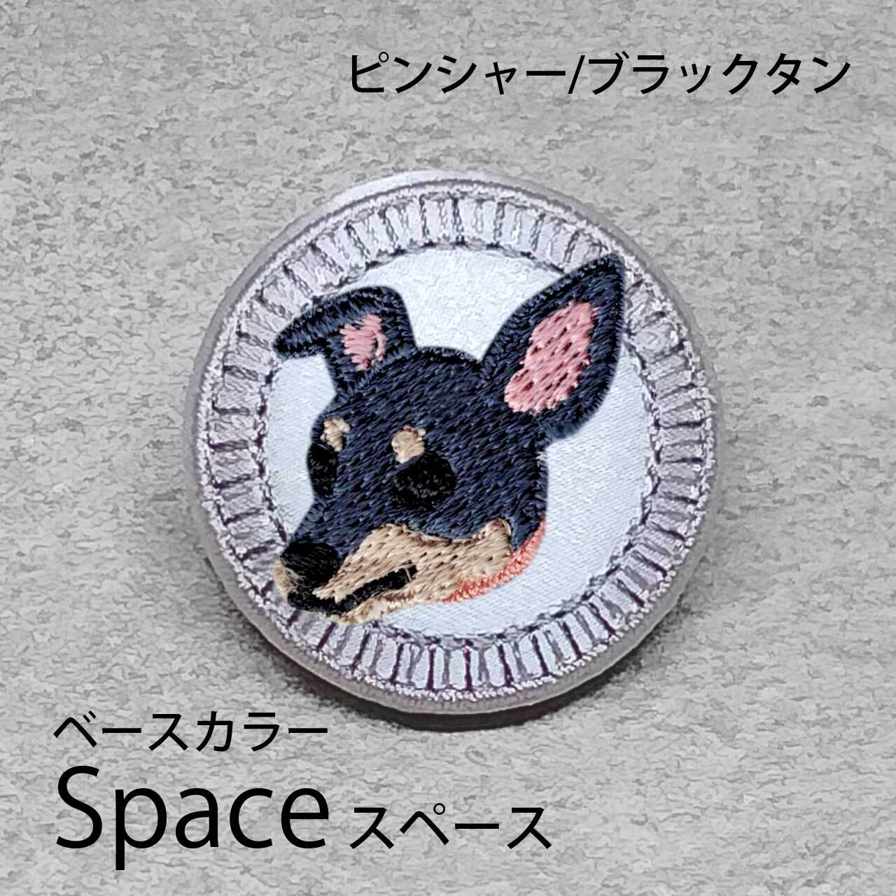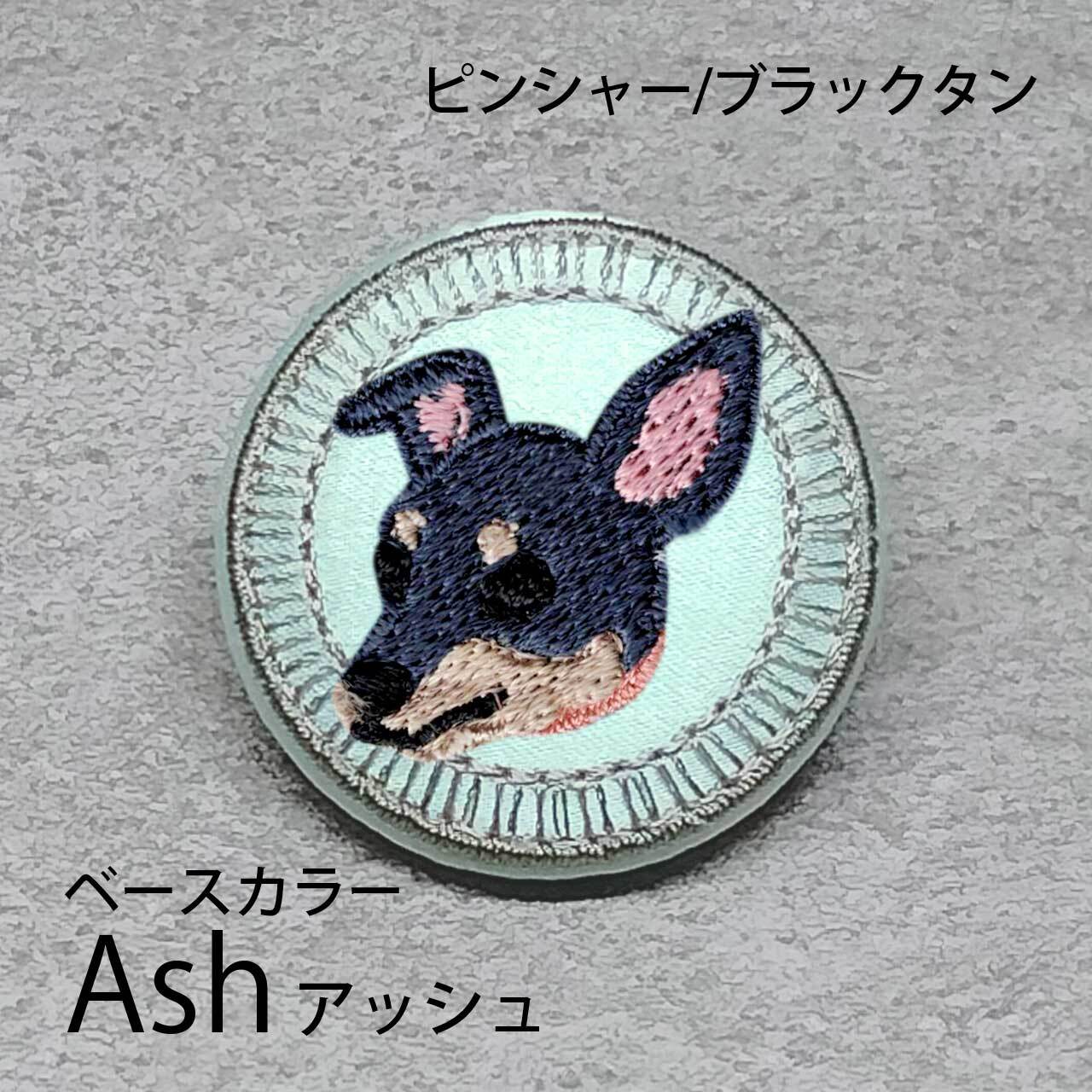 サテン生地にブラックタンのピンシャーを刺繍したアイテム。