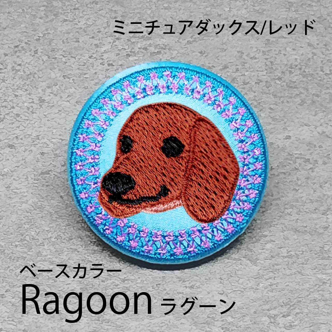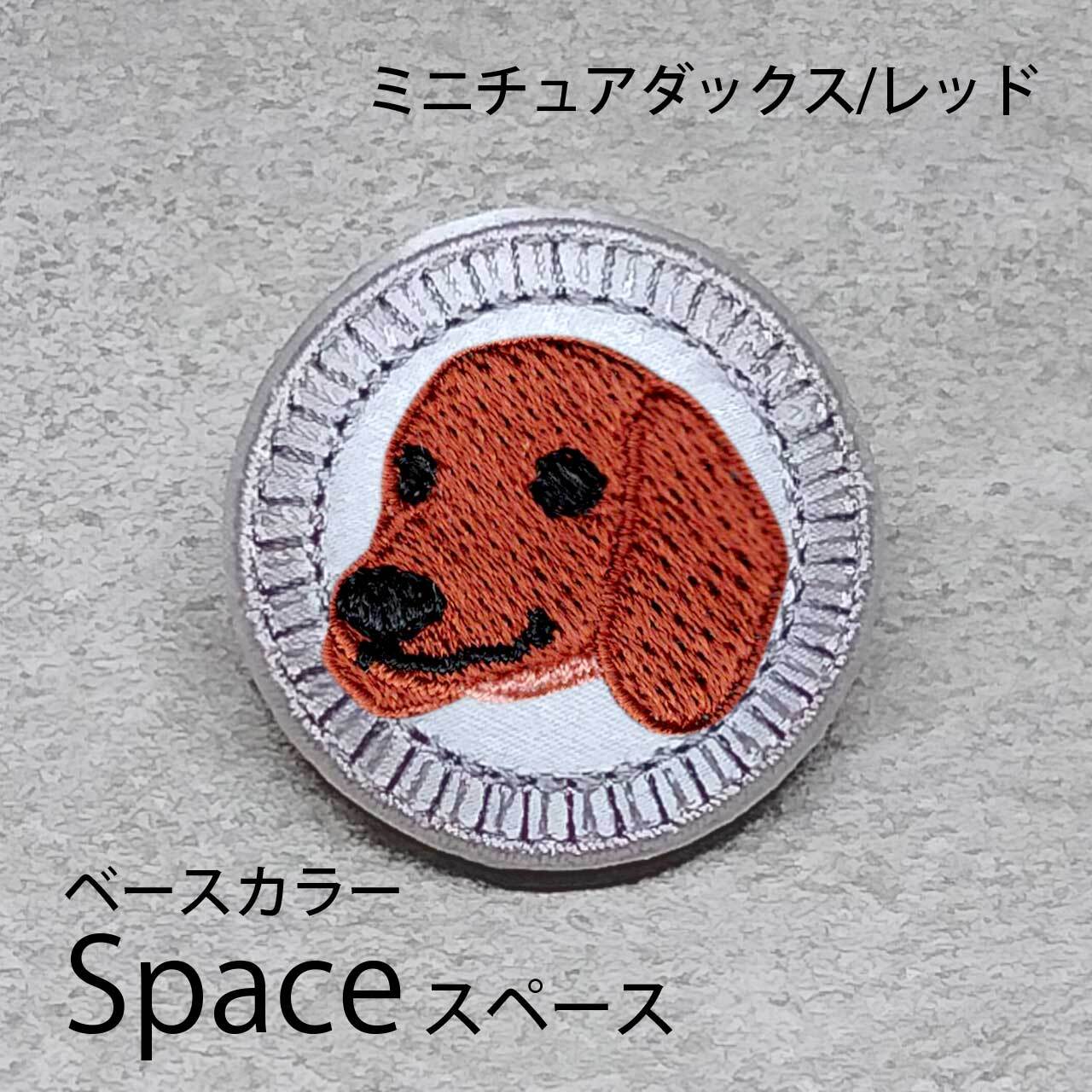 サテン生地にレッドのミニチュアダックス(スムース)を刺繍したアイテム。