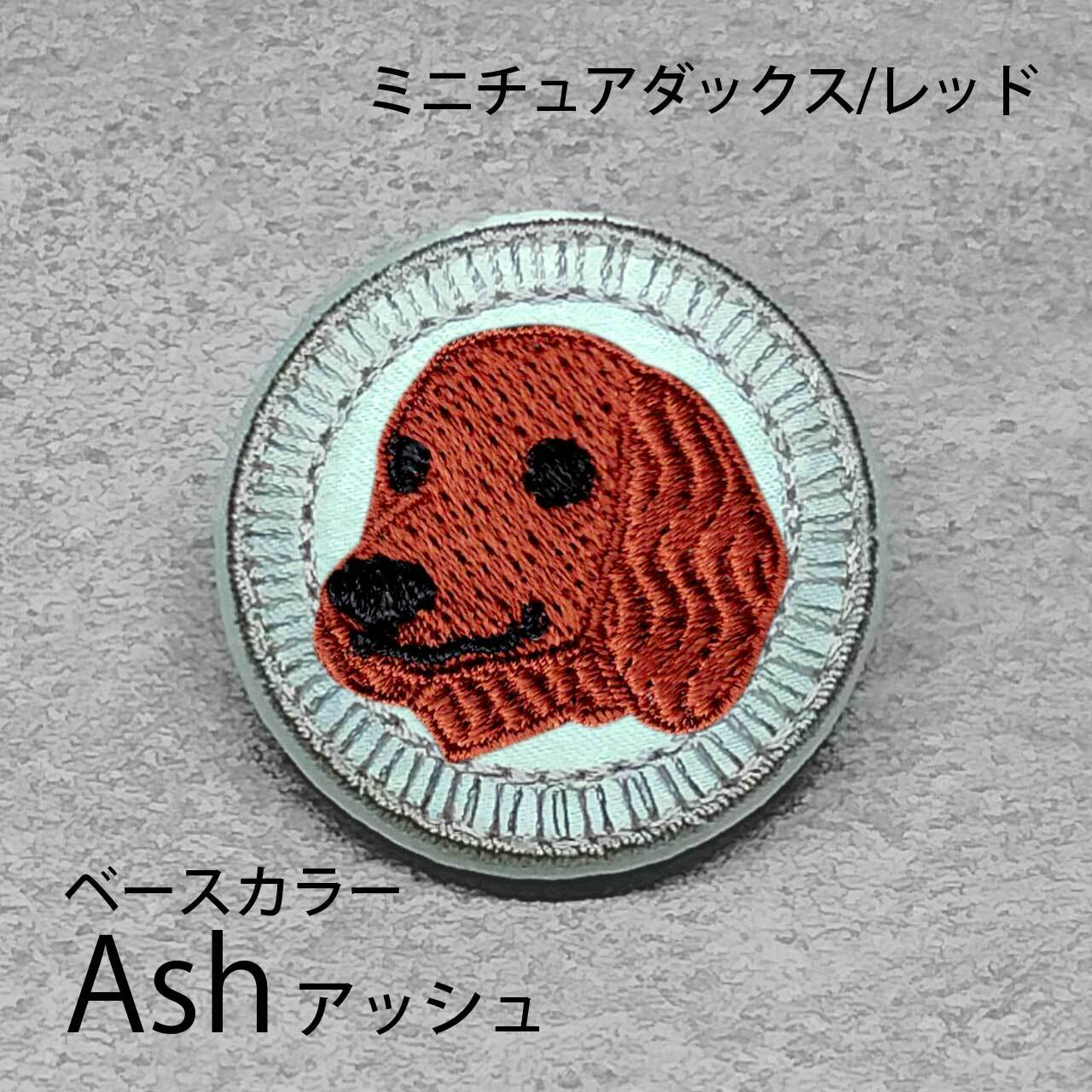 サテン生地にレッドのミニチュアダックス(ロング)を刺繍したアイテム。