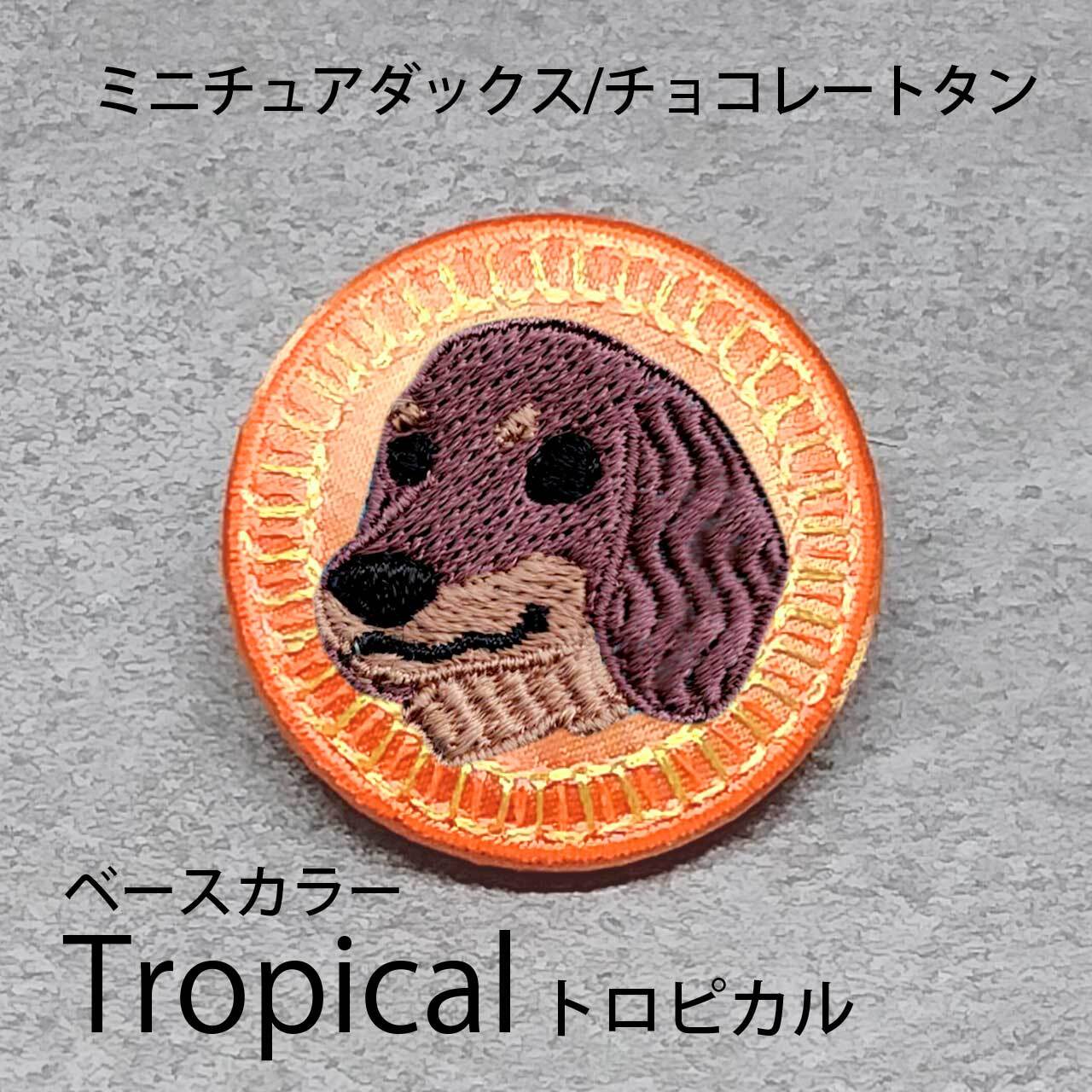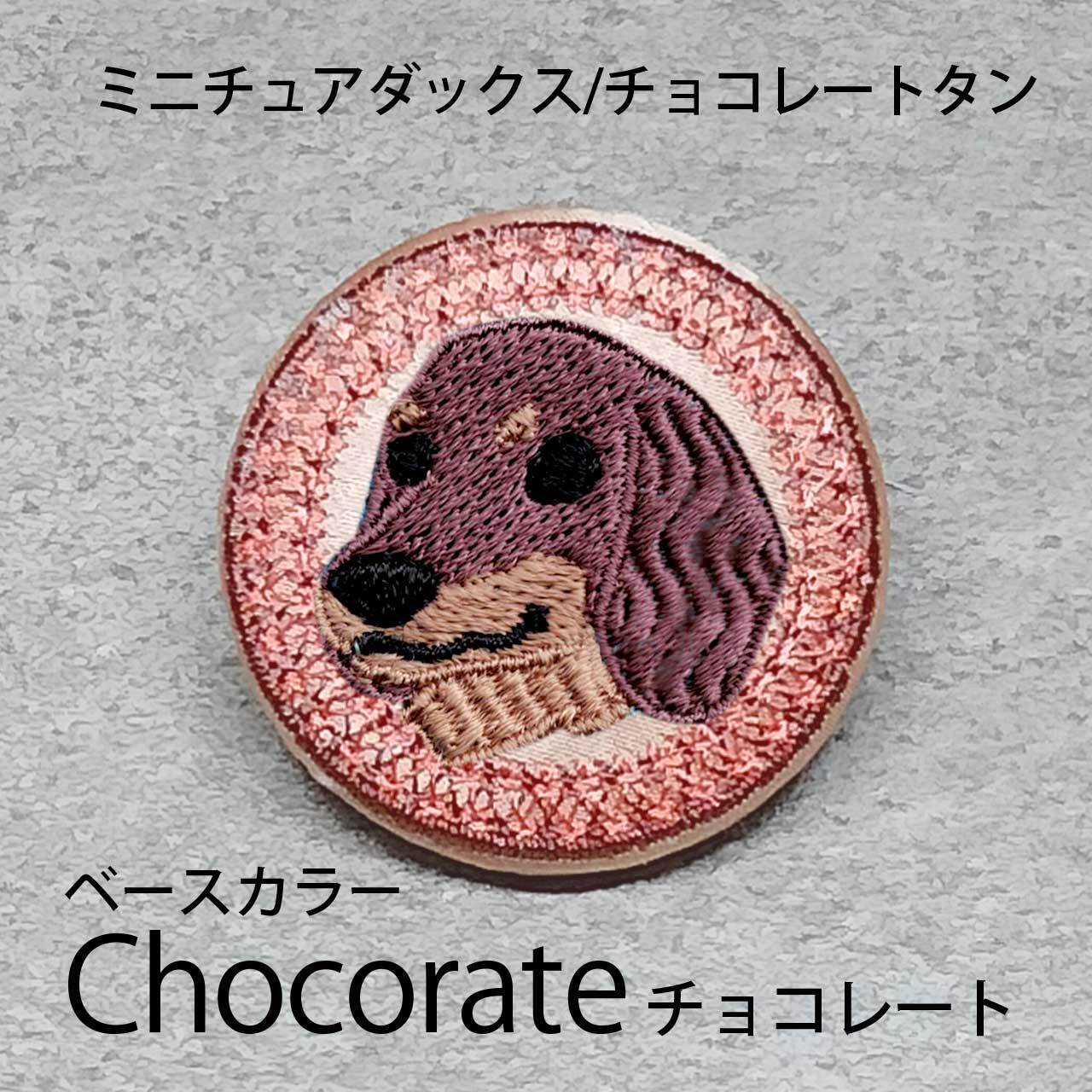サテン生地にチョコレートタンのミニチュアダックス(ロング)を刺繍したアイテム。