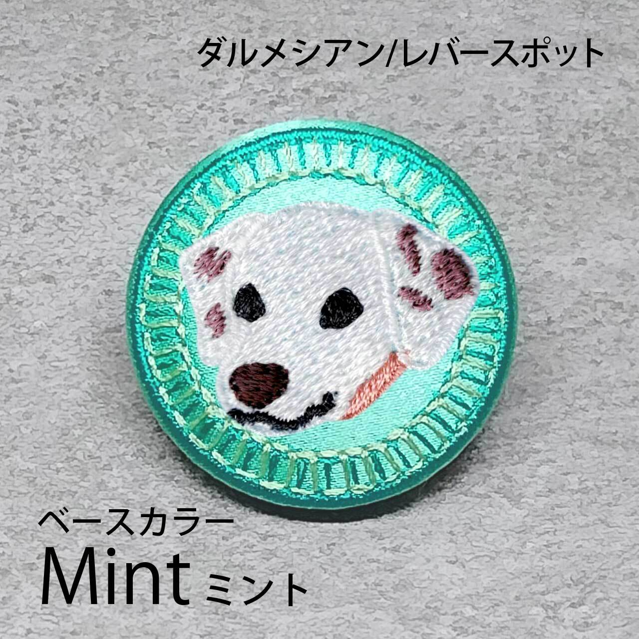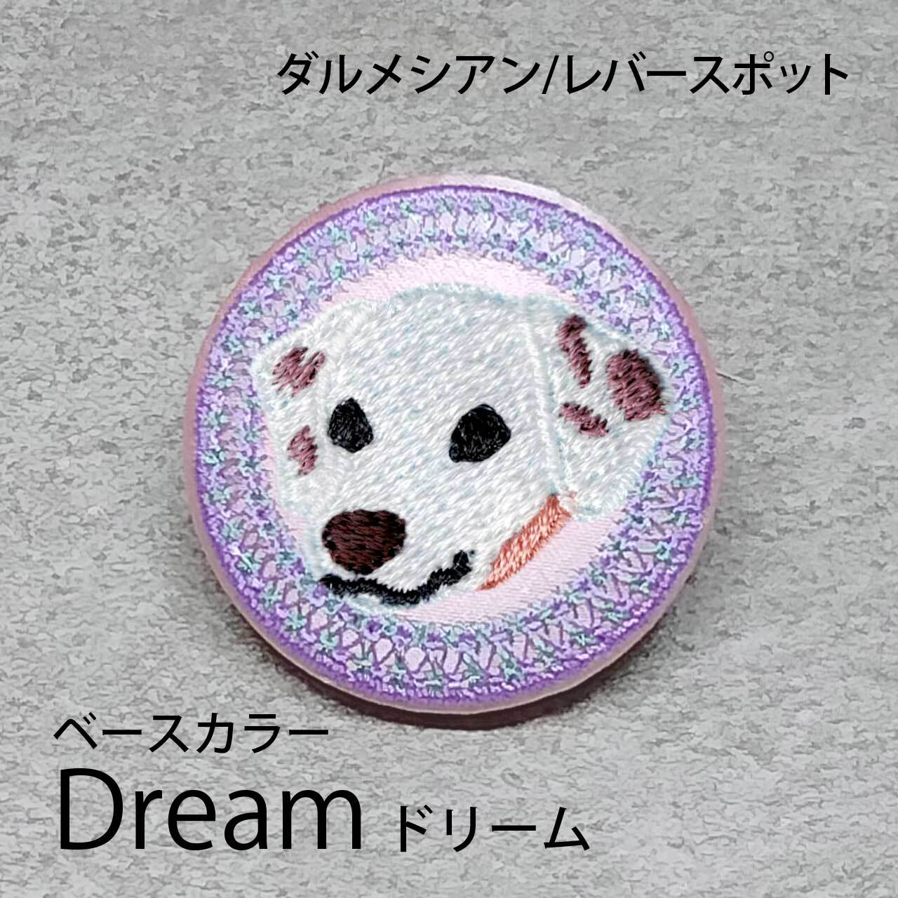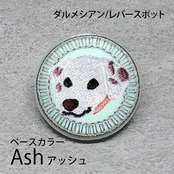 サテン生地にレバースポットのダルメシアンを刺繍したアイテム。