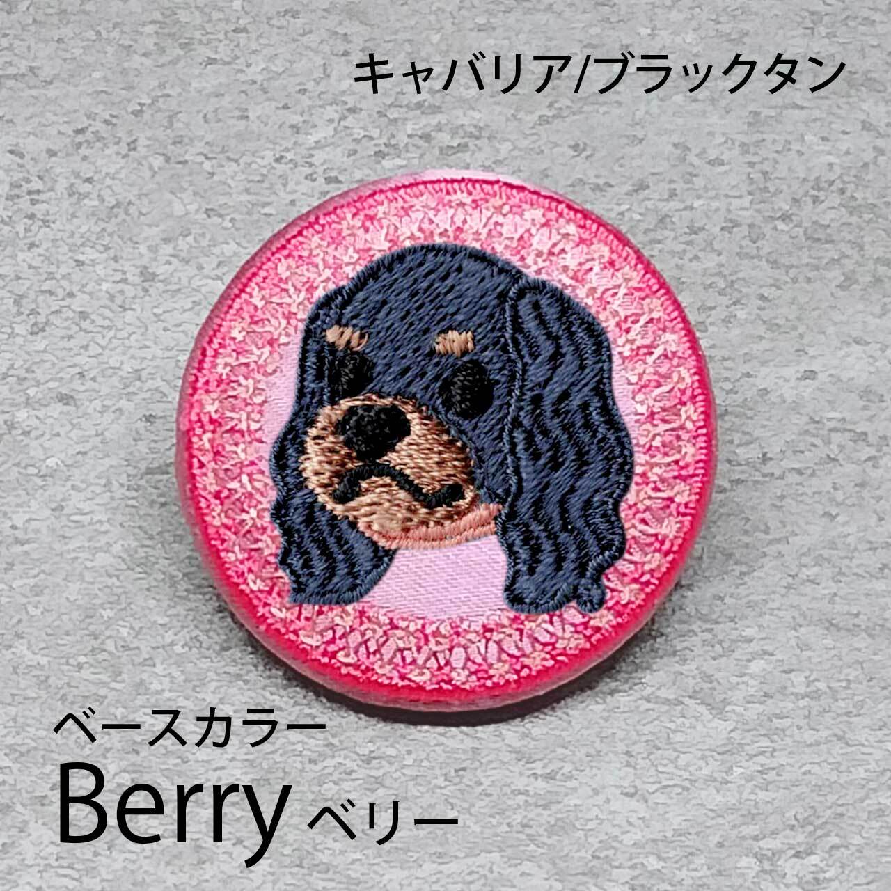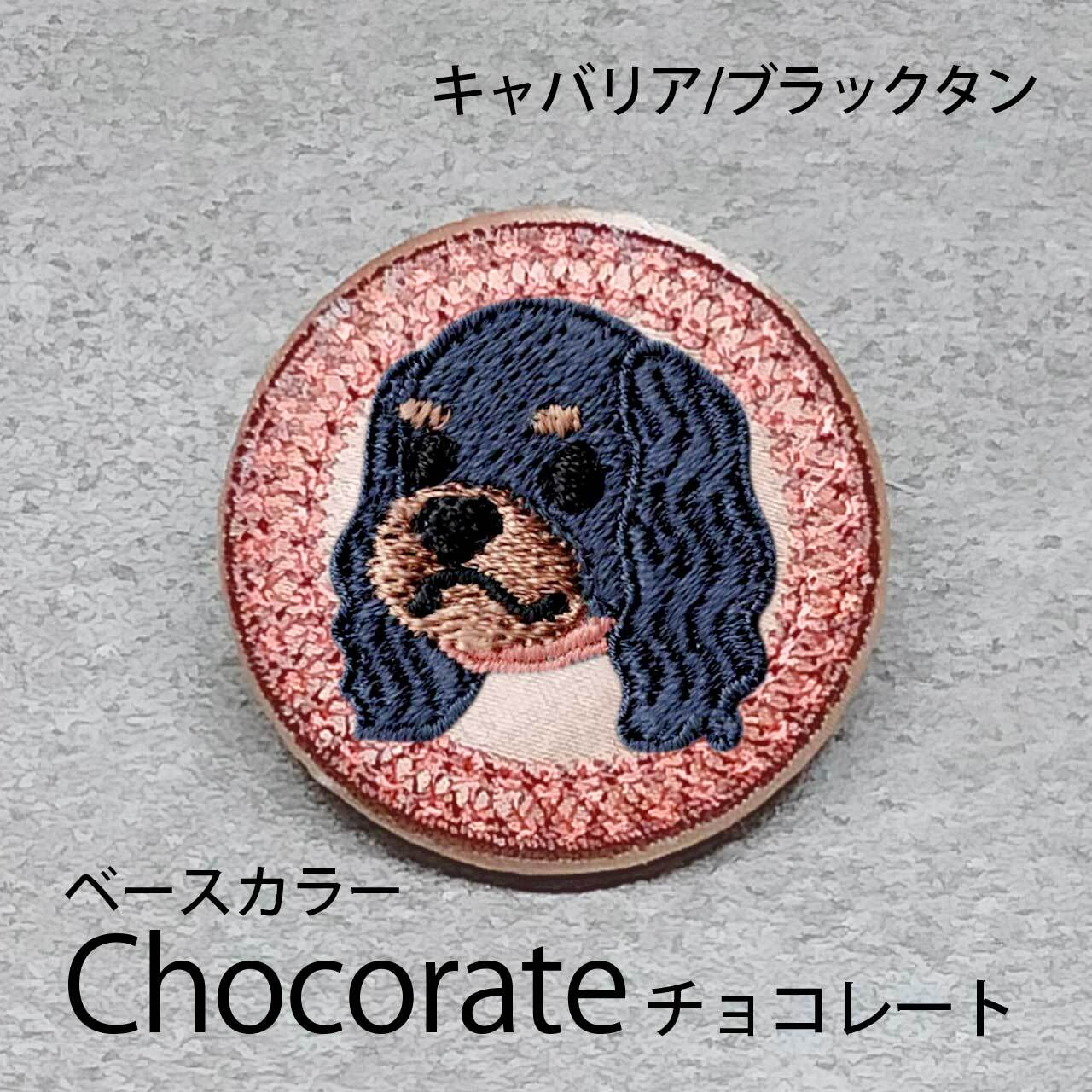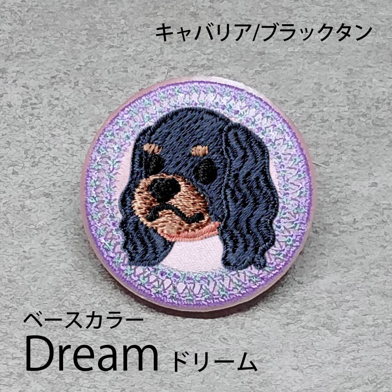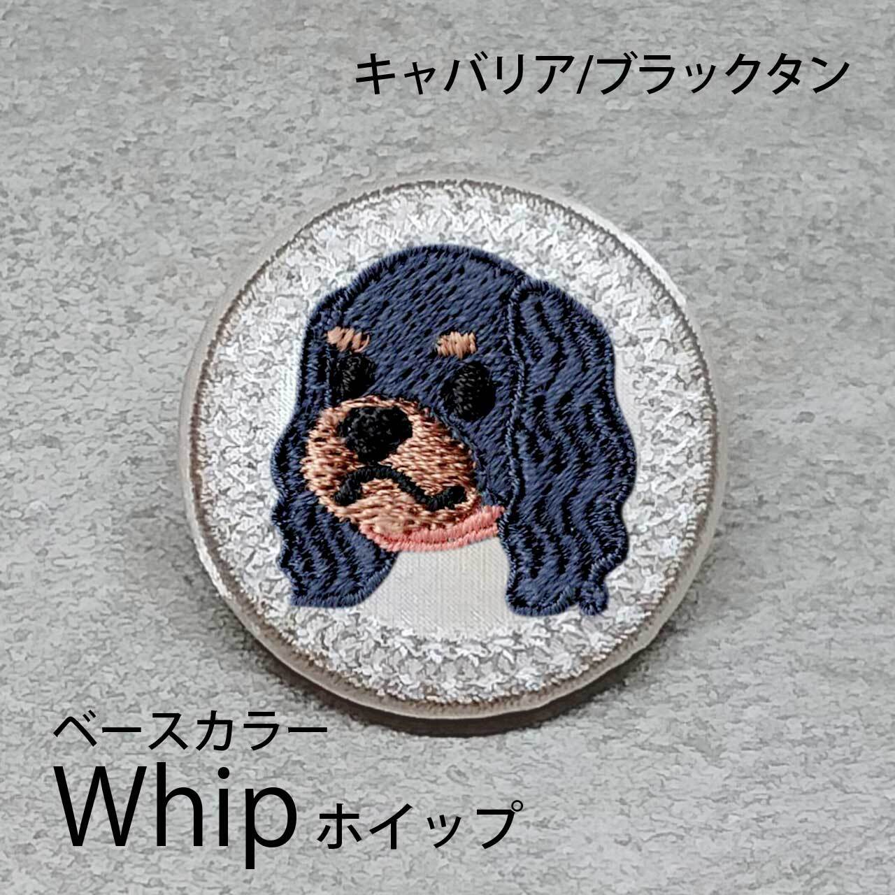 サテン生地にブラックタンのキャバリアを刺繍したアイテム。