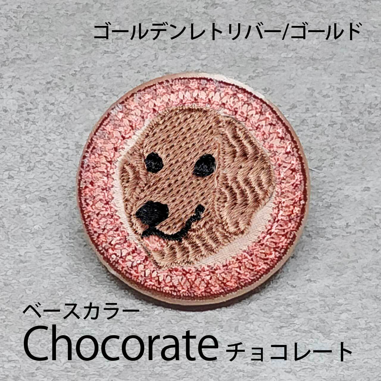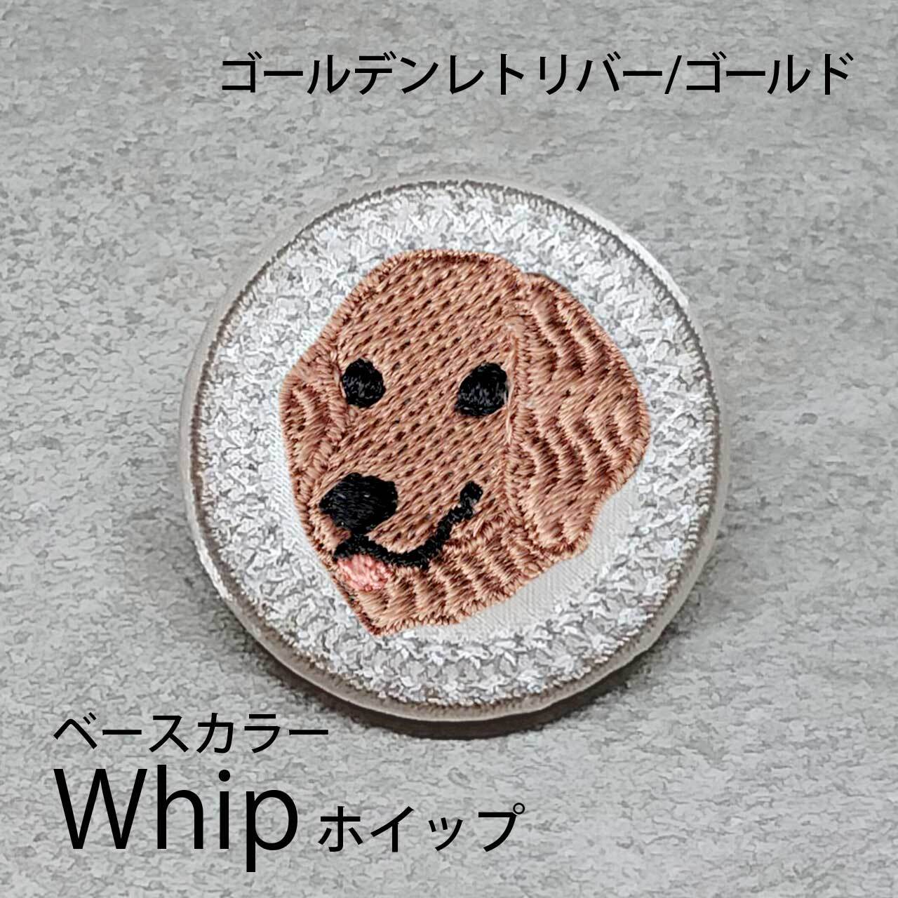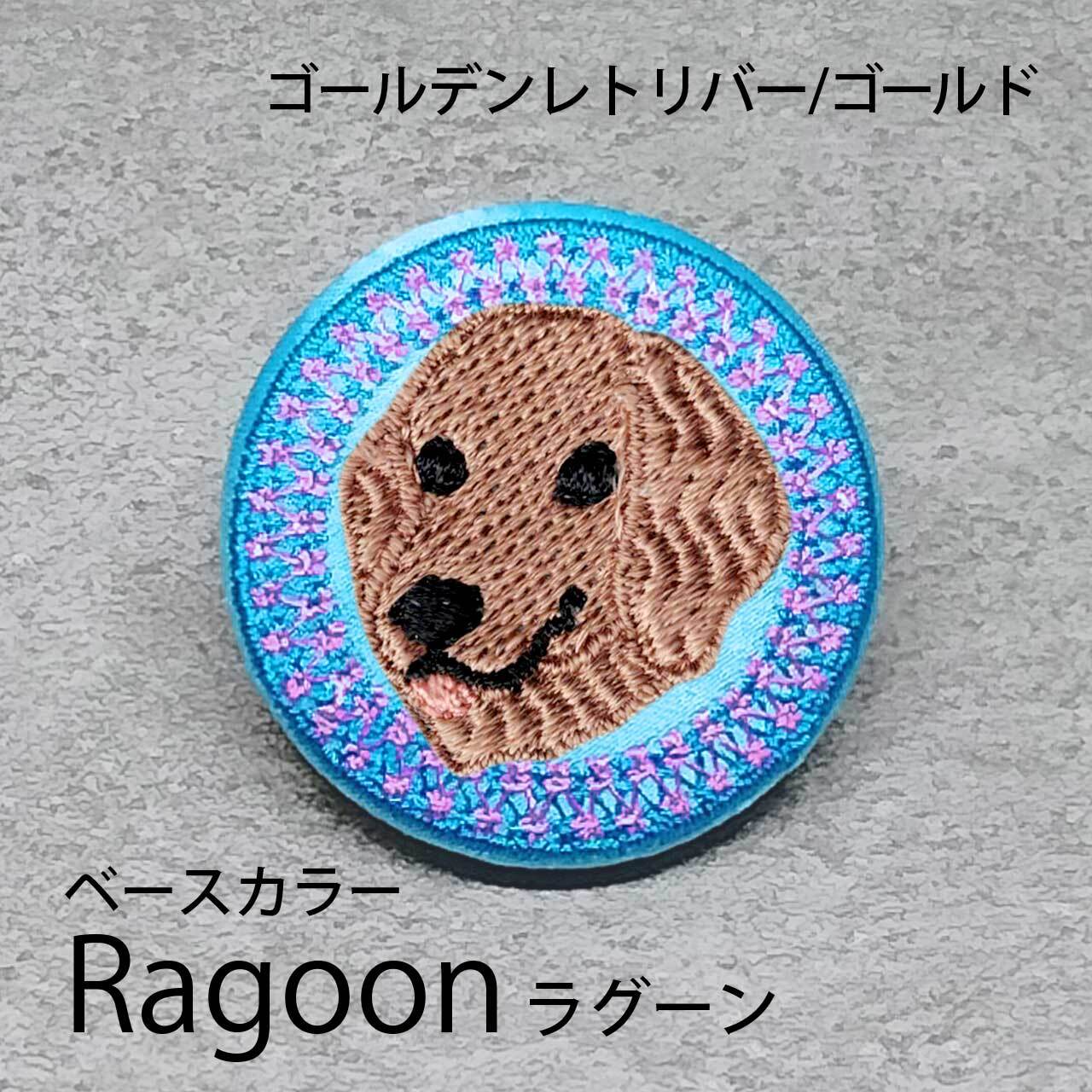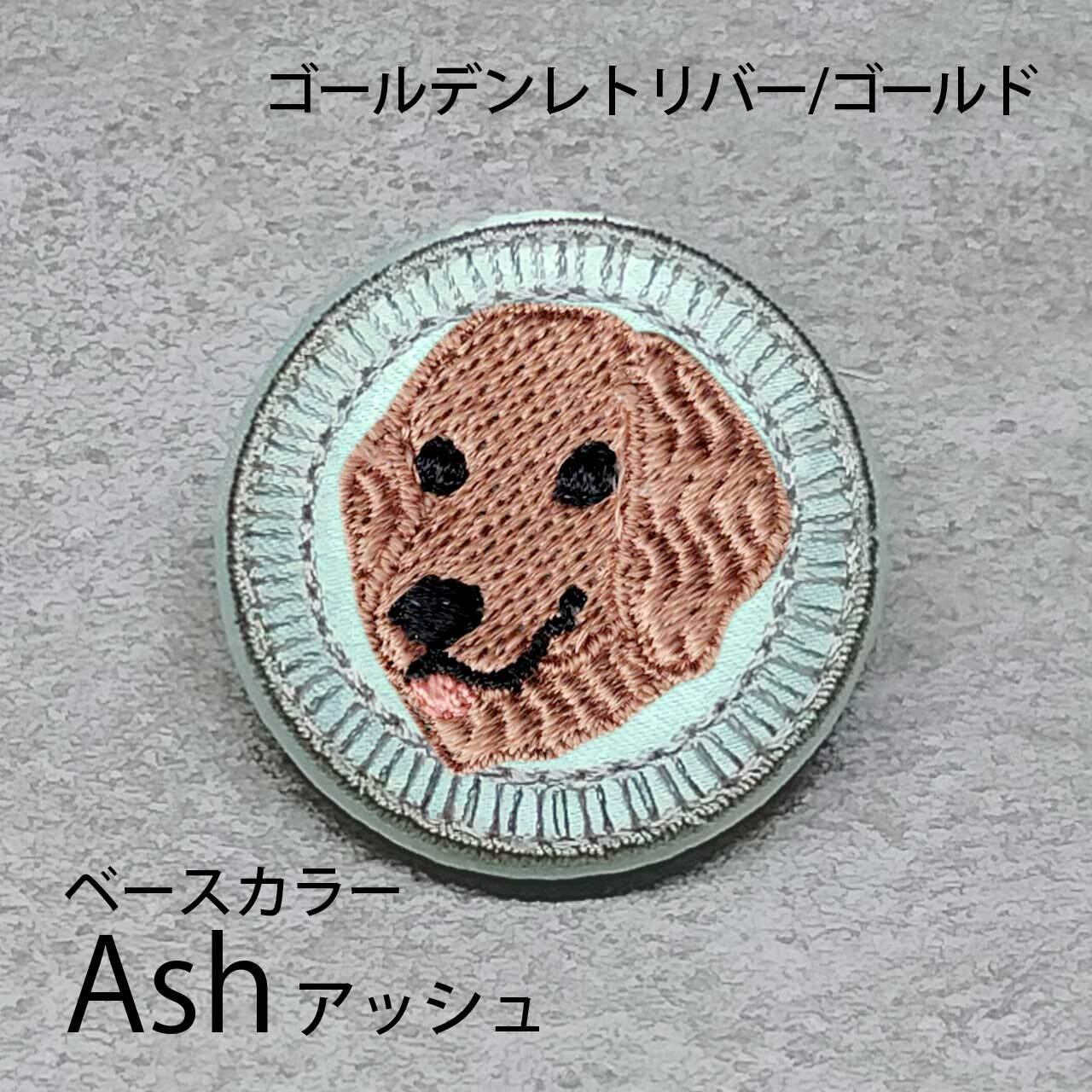 サテン生地にゴールドのゴールデンレトリバーを刺繍したアイテム。