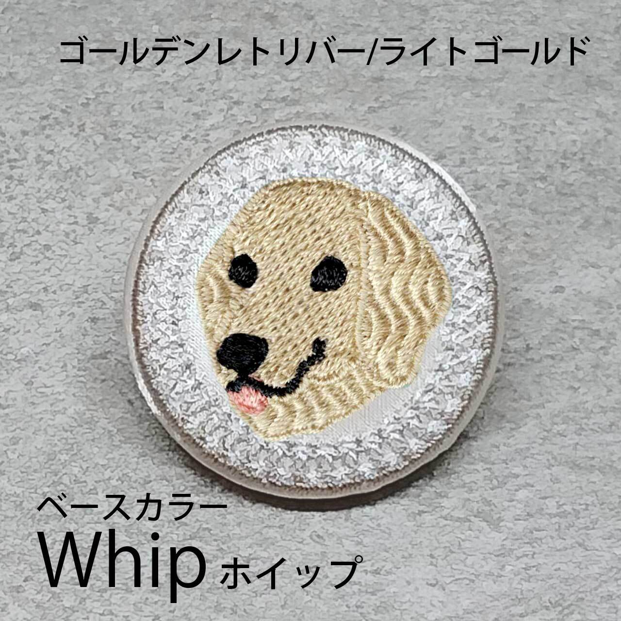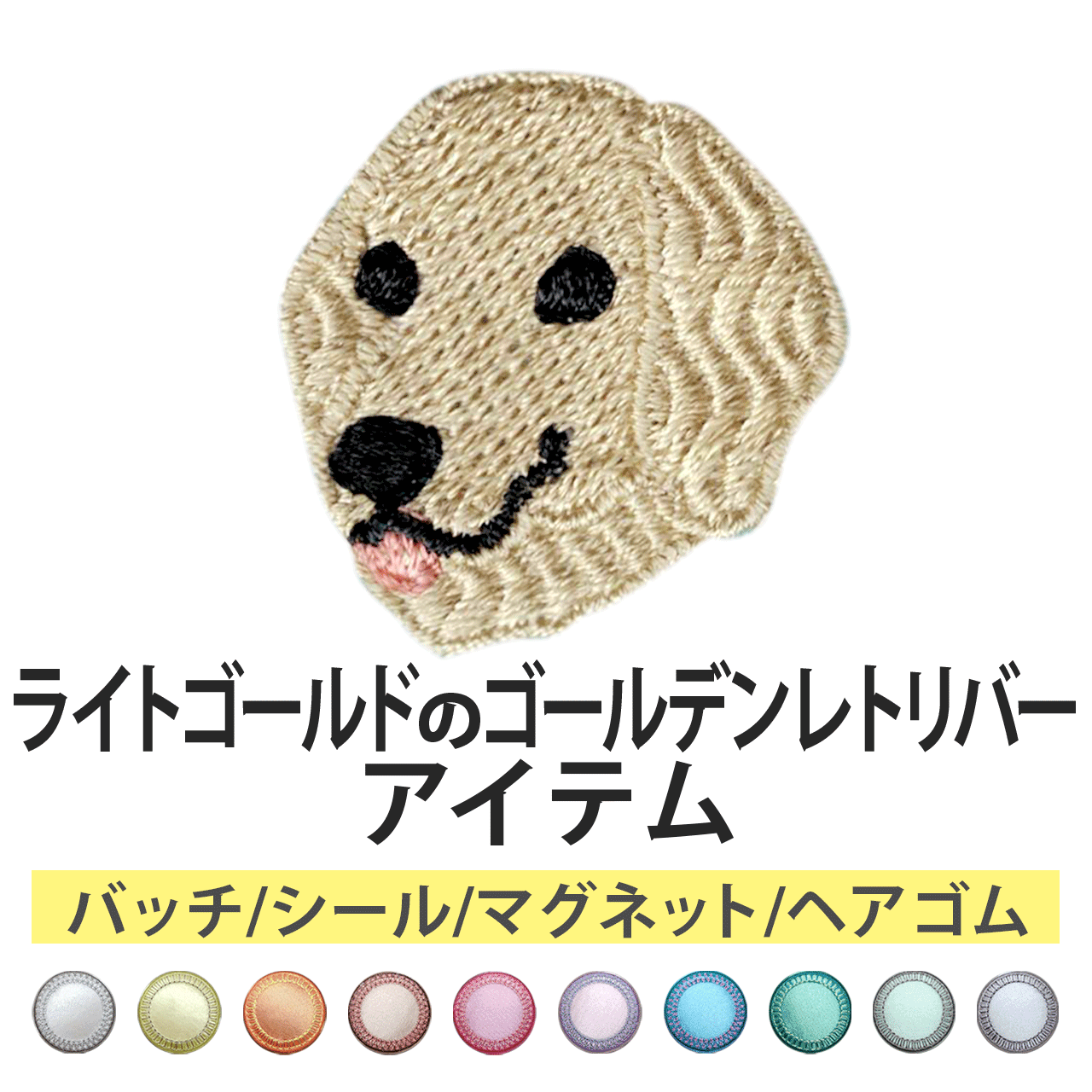 サテン生地にライトゴールドのゴールデンレトリバーを刺繍したアイテム。