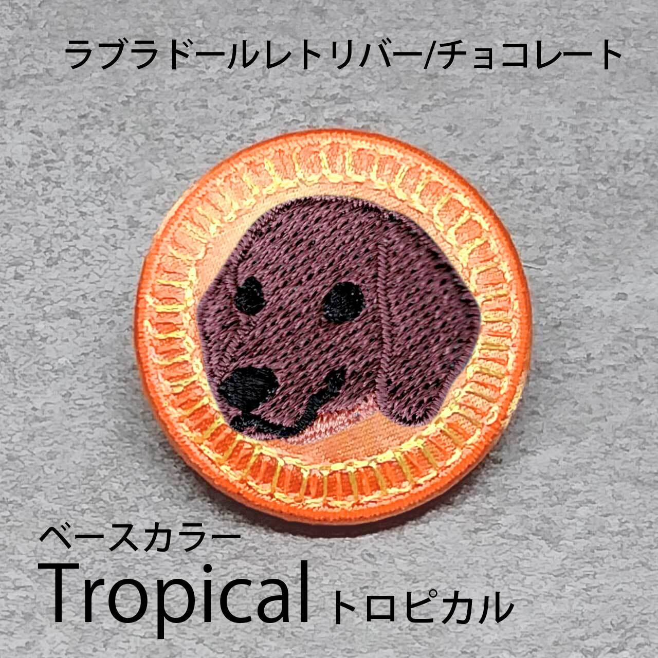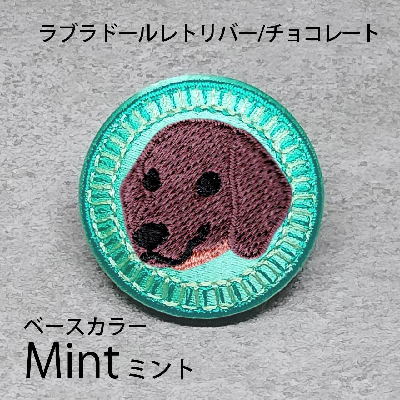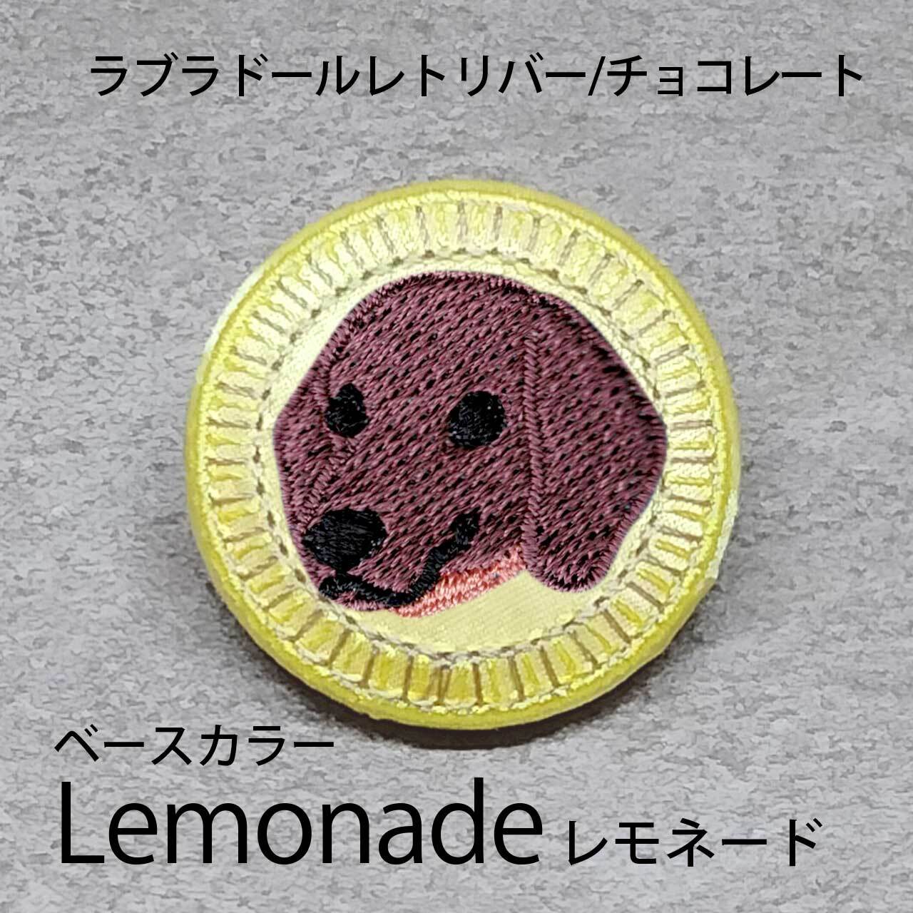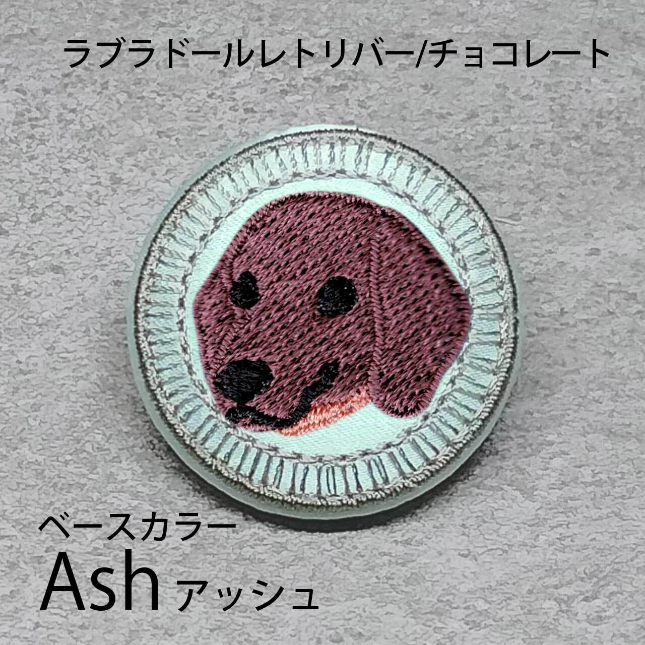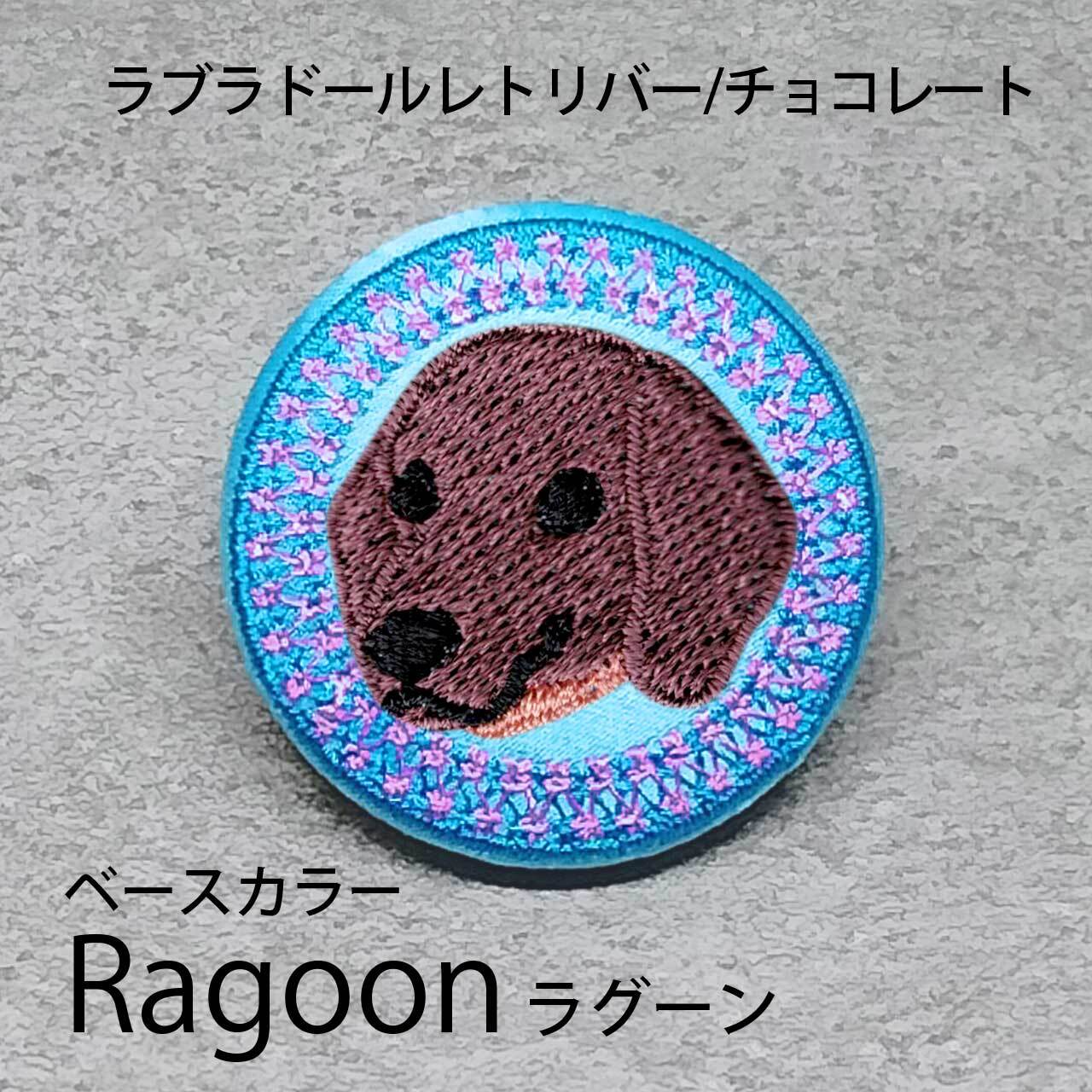サテン生地にチョコレートのラブラドールレトリバーを刺繍したアイテム。