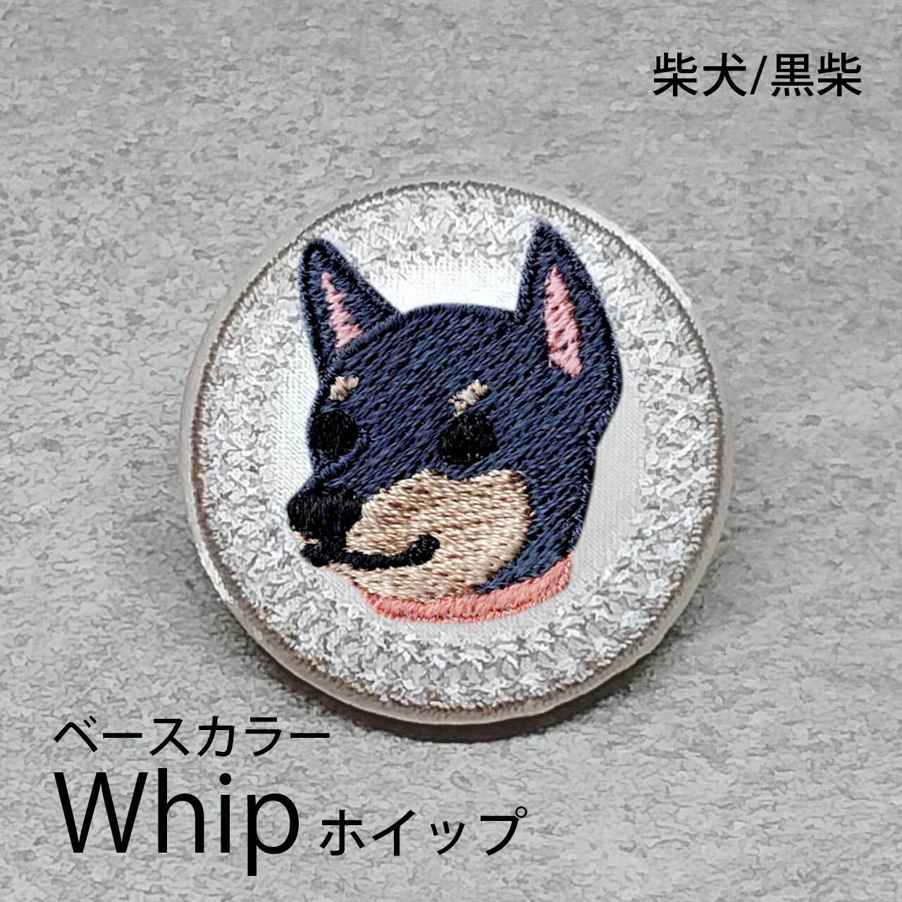 サテン生地に黒の柴犬を刺繍したアイテム。
