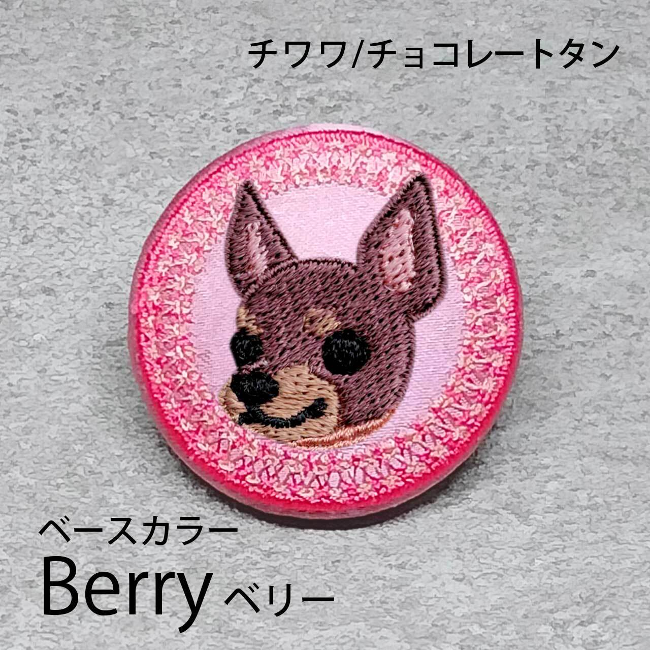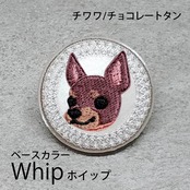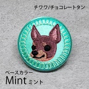 サテン生地にチョコレートタンのチワワ(スムース)を刺繍したアイテム。