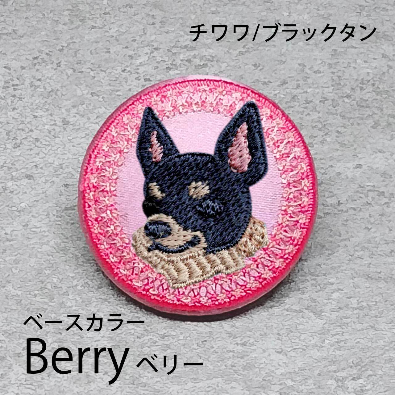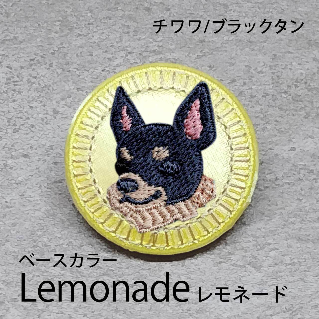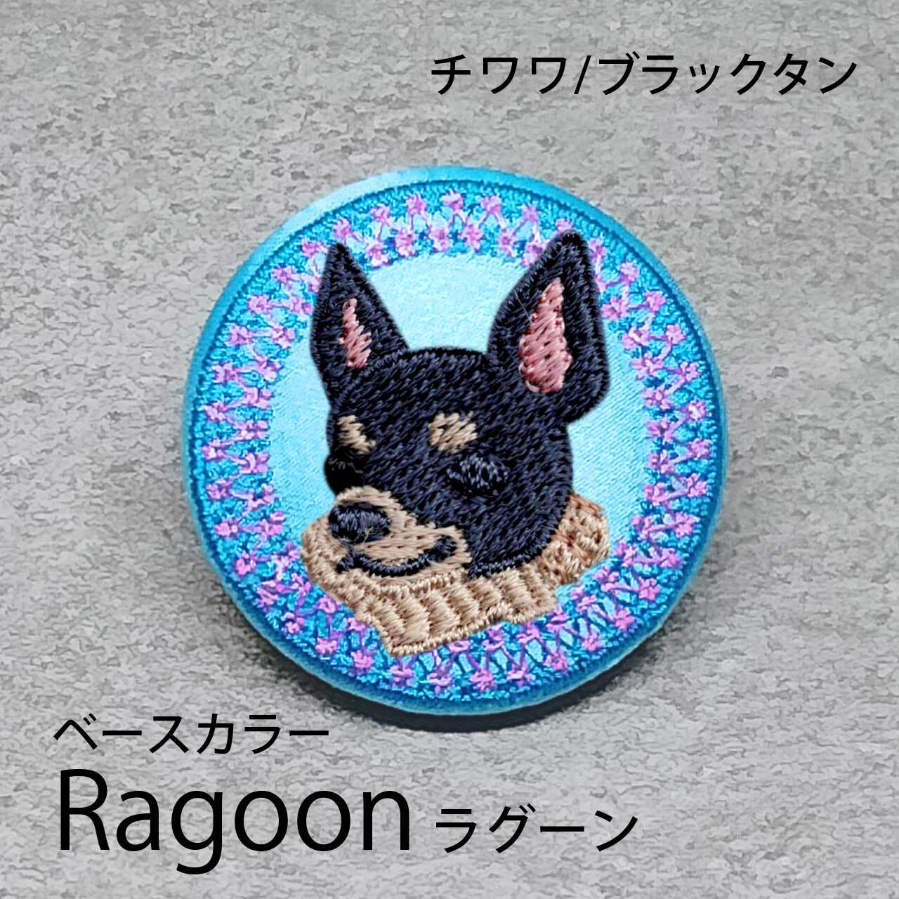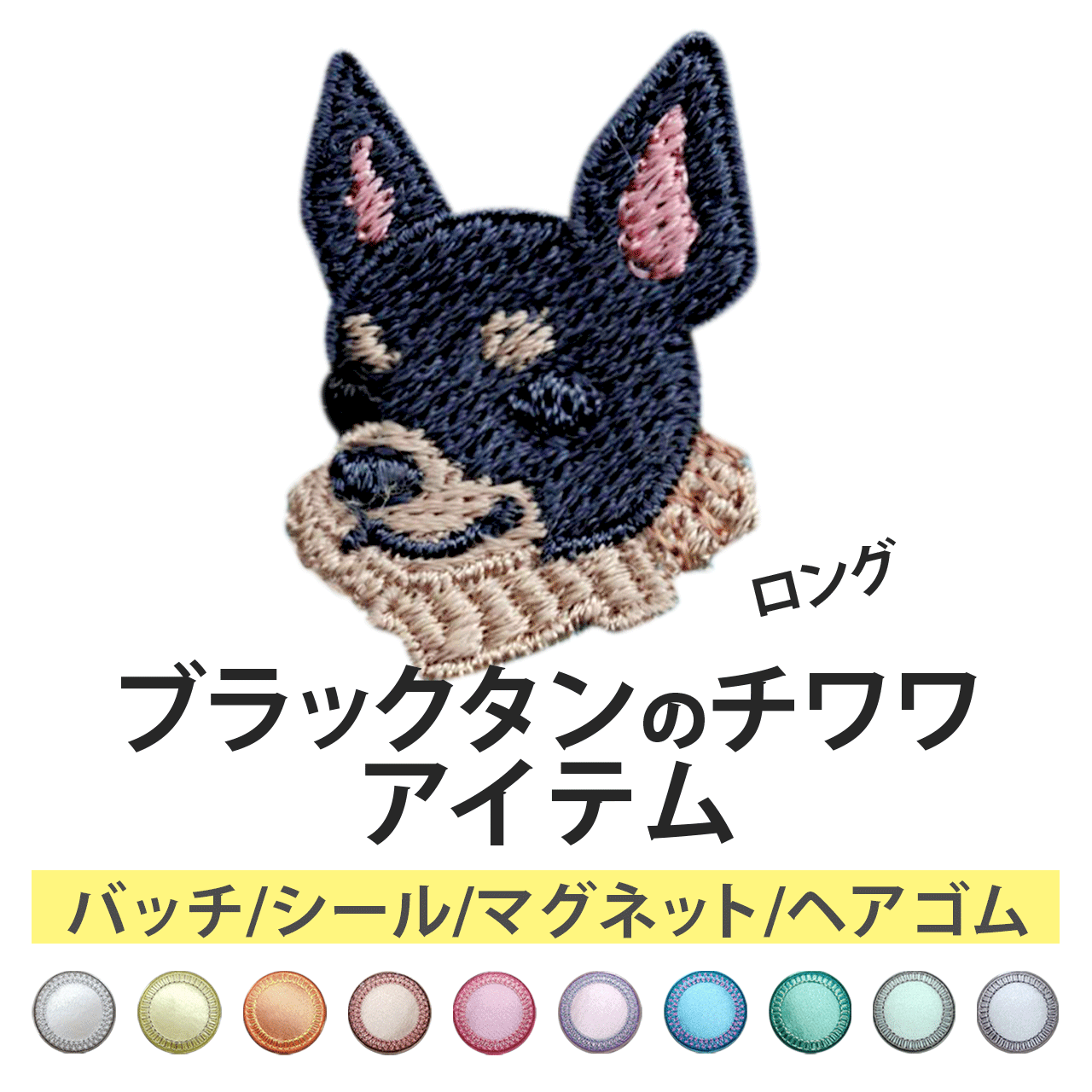 サテン生地にブラックタンのチワワ(ロング)を刺繍したアイテム。