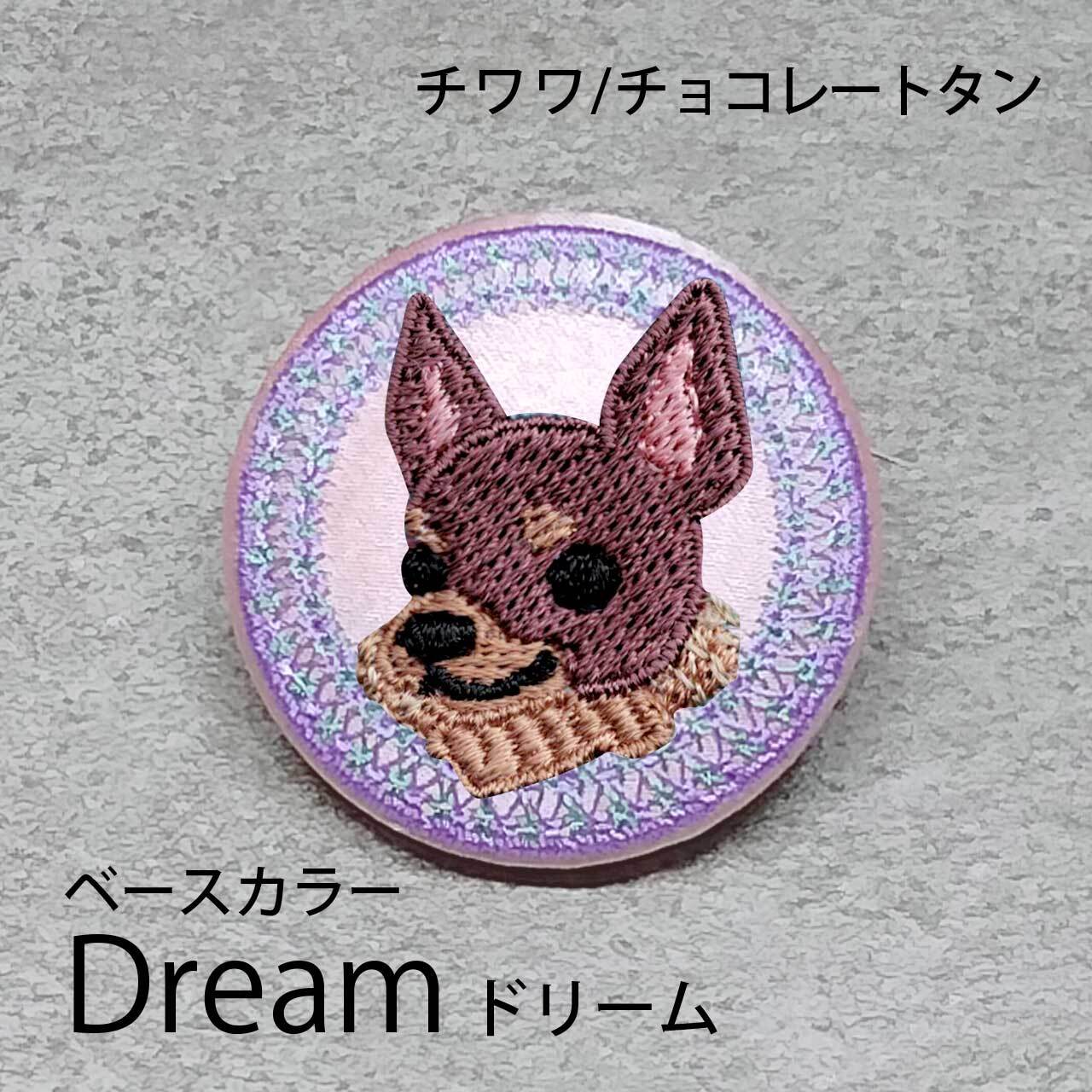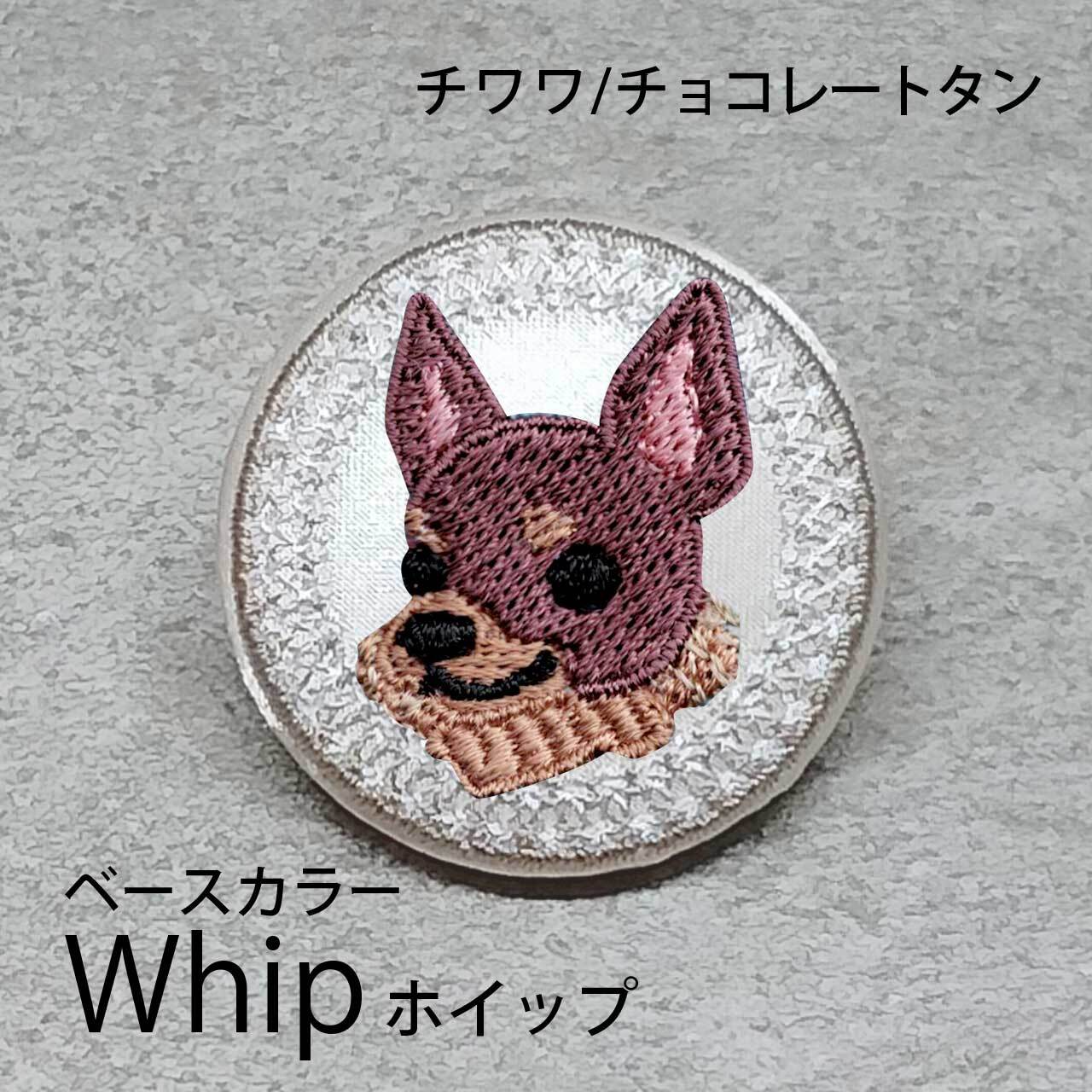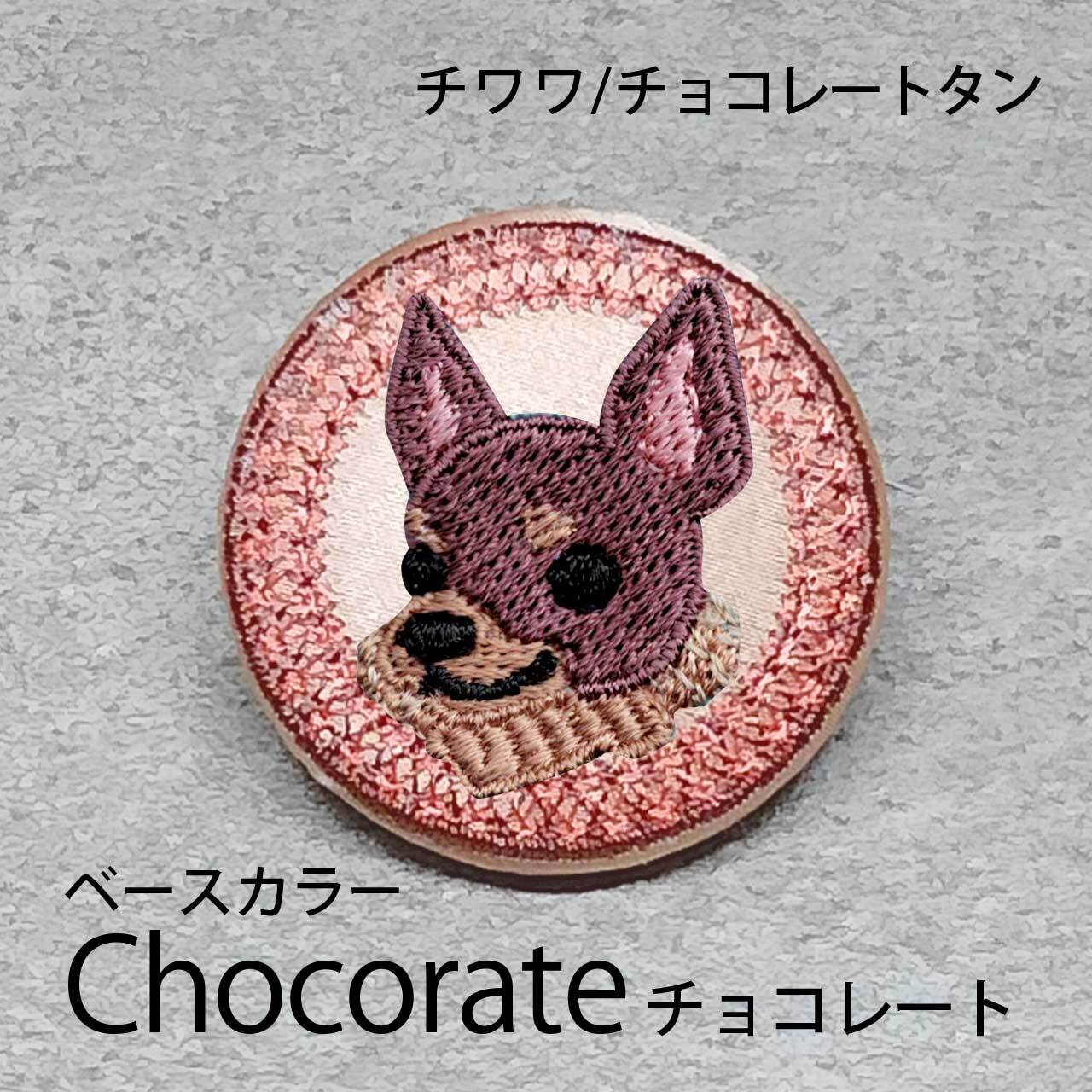 サテン生地にチョコレートタンのチワワ(ロング)を刺繍したアイテム。