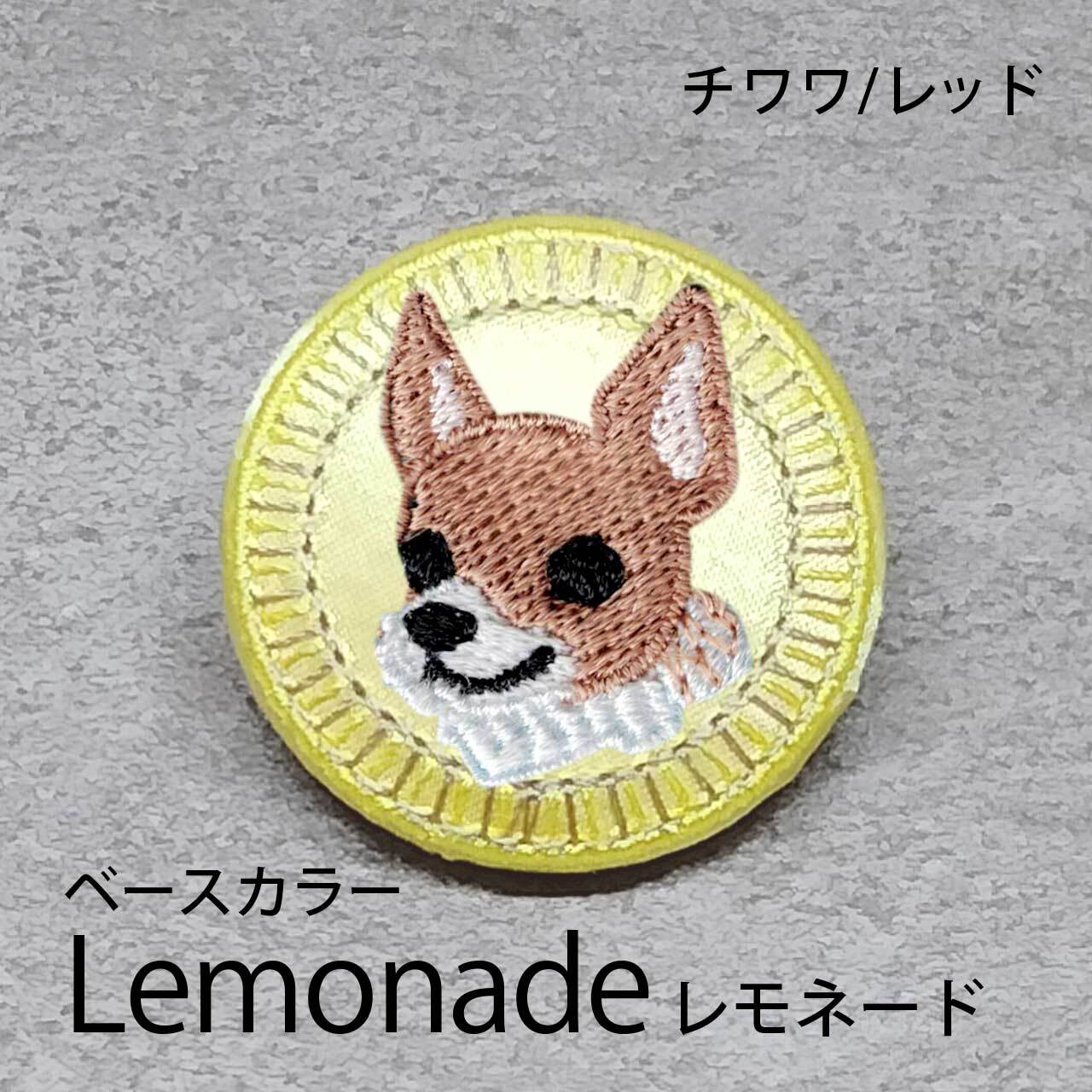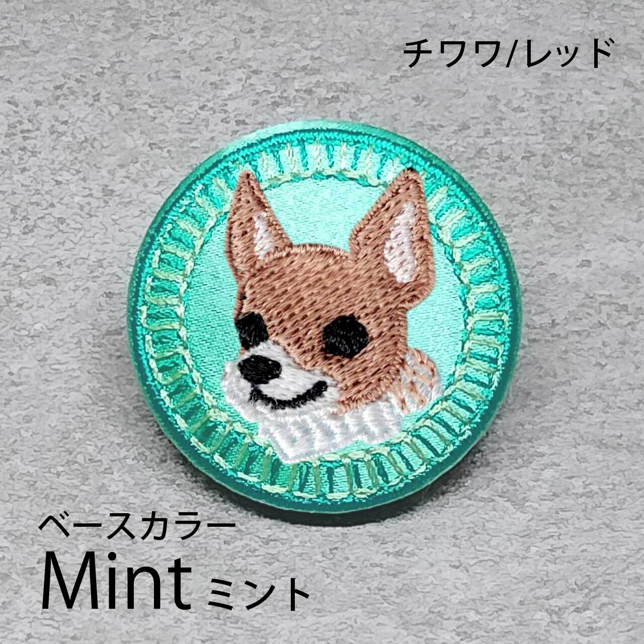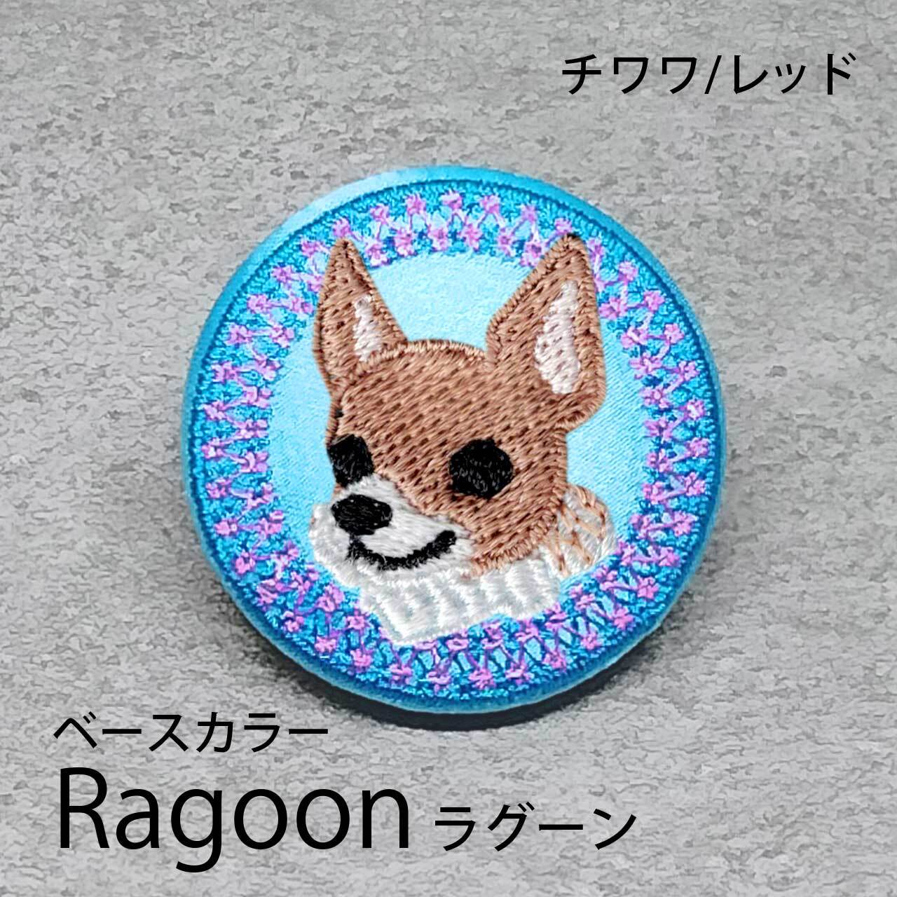 サテン生地にレッドのチワワ(ロング)を刺繍したアイテム。