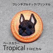 サテン生地にブリンドルのフレンチブルドックを刺繍したアイテム。