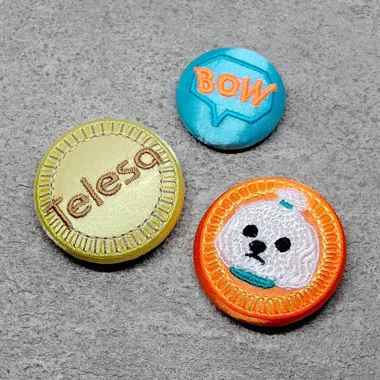 サテン生地にワンコの気持ちを刺繍したアイテム。