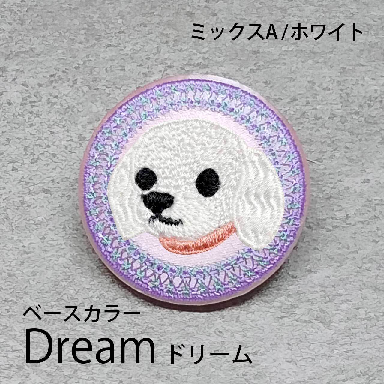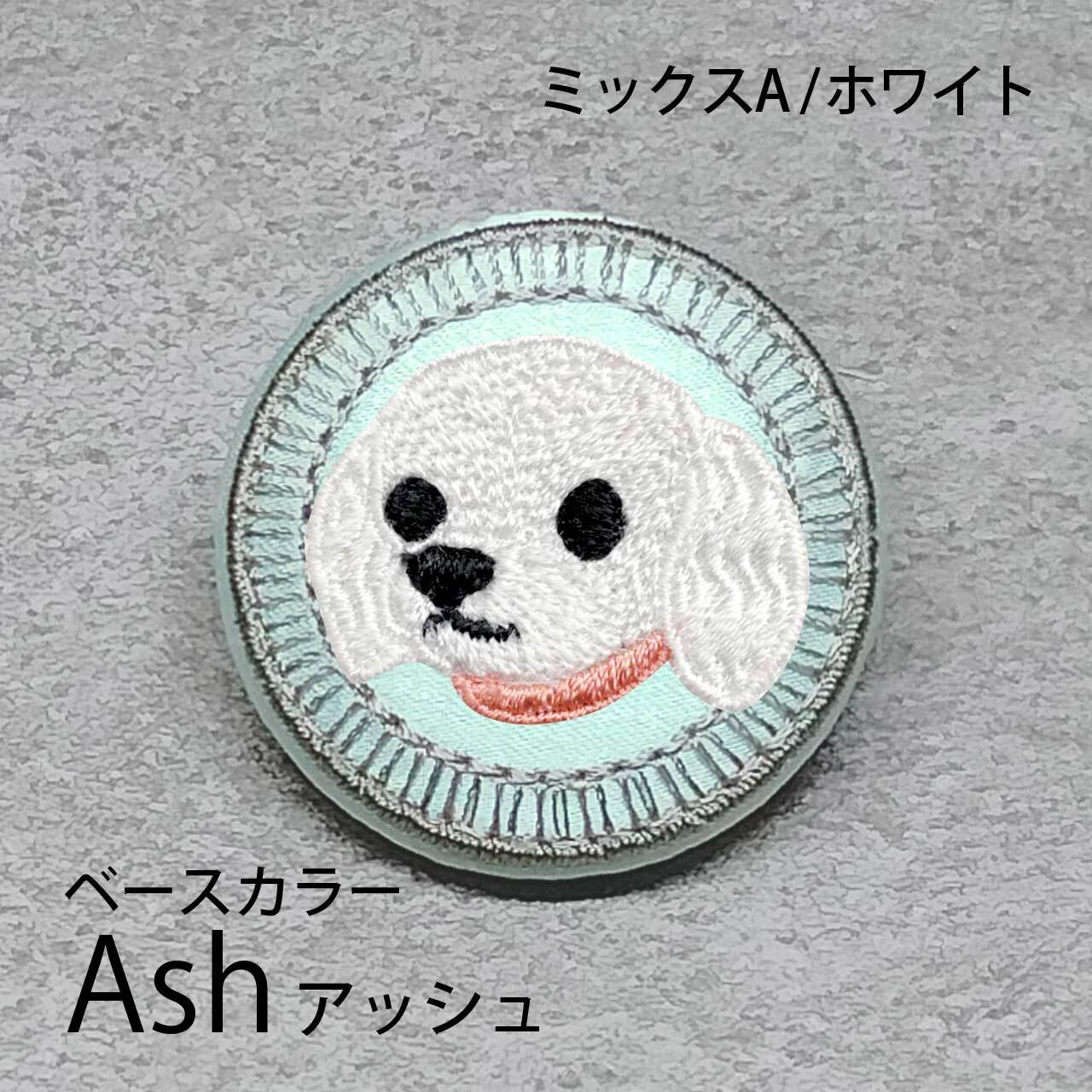 サテン生地にホワイトのミックスAを刺繍したアイテム。