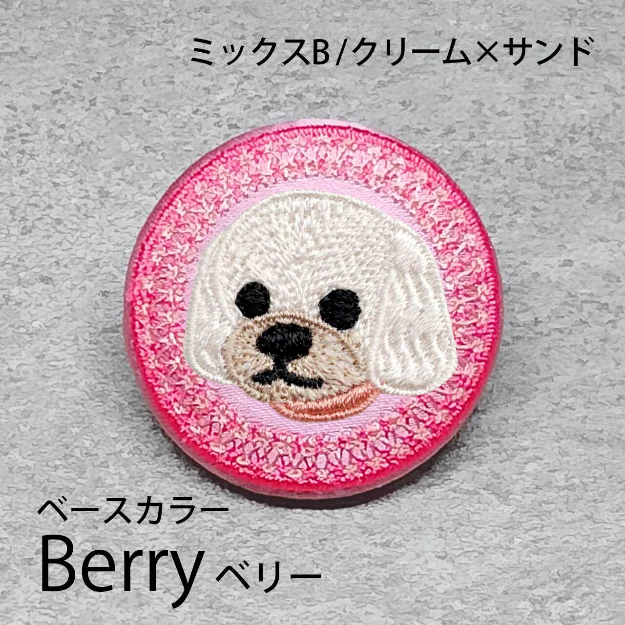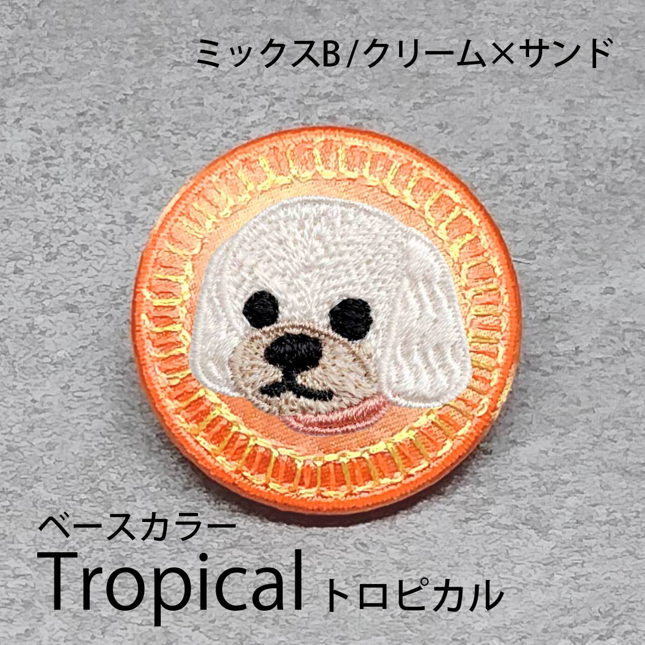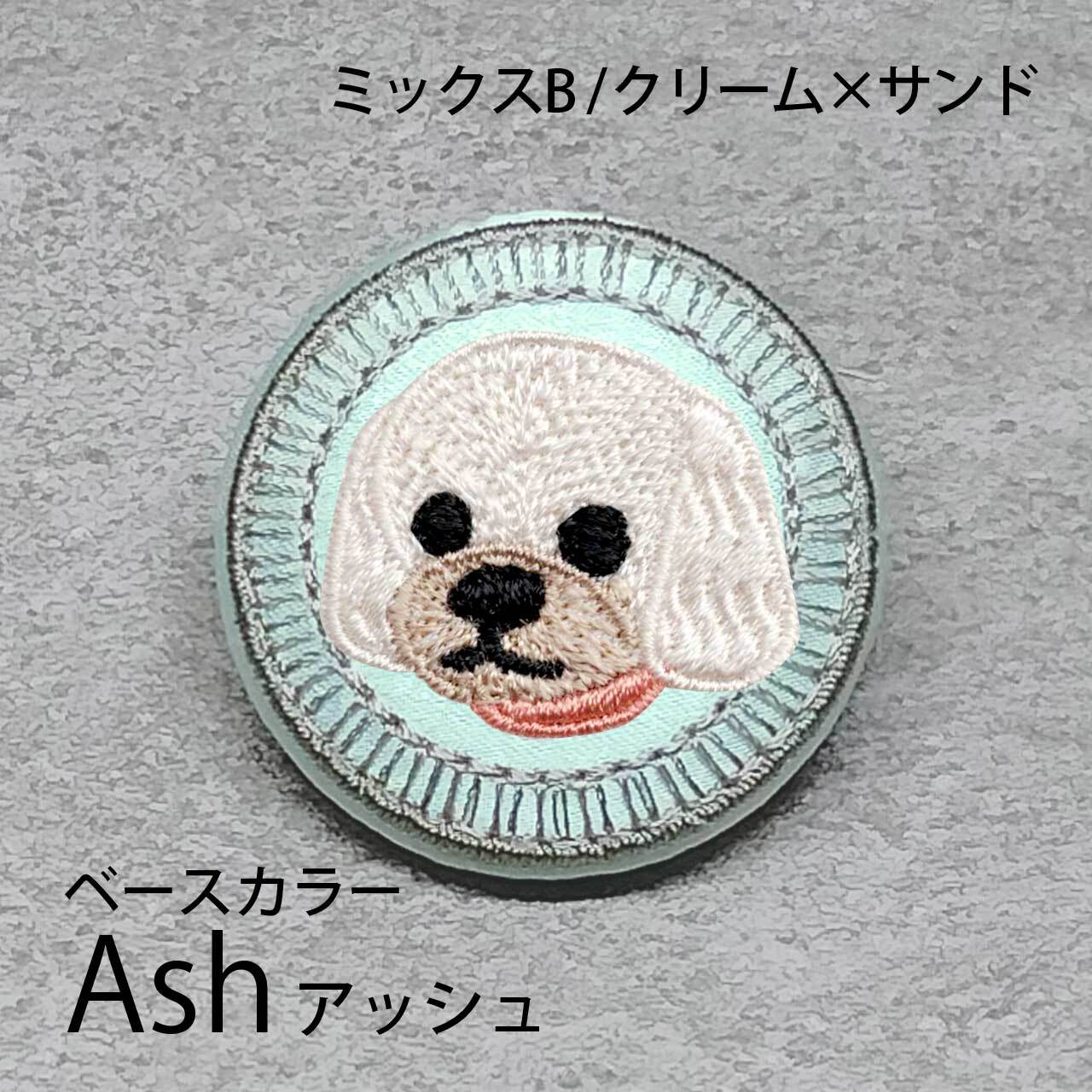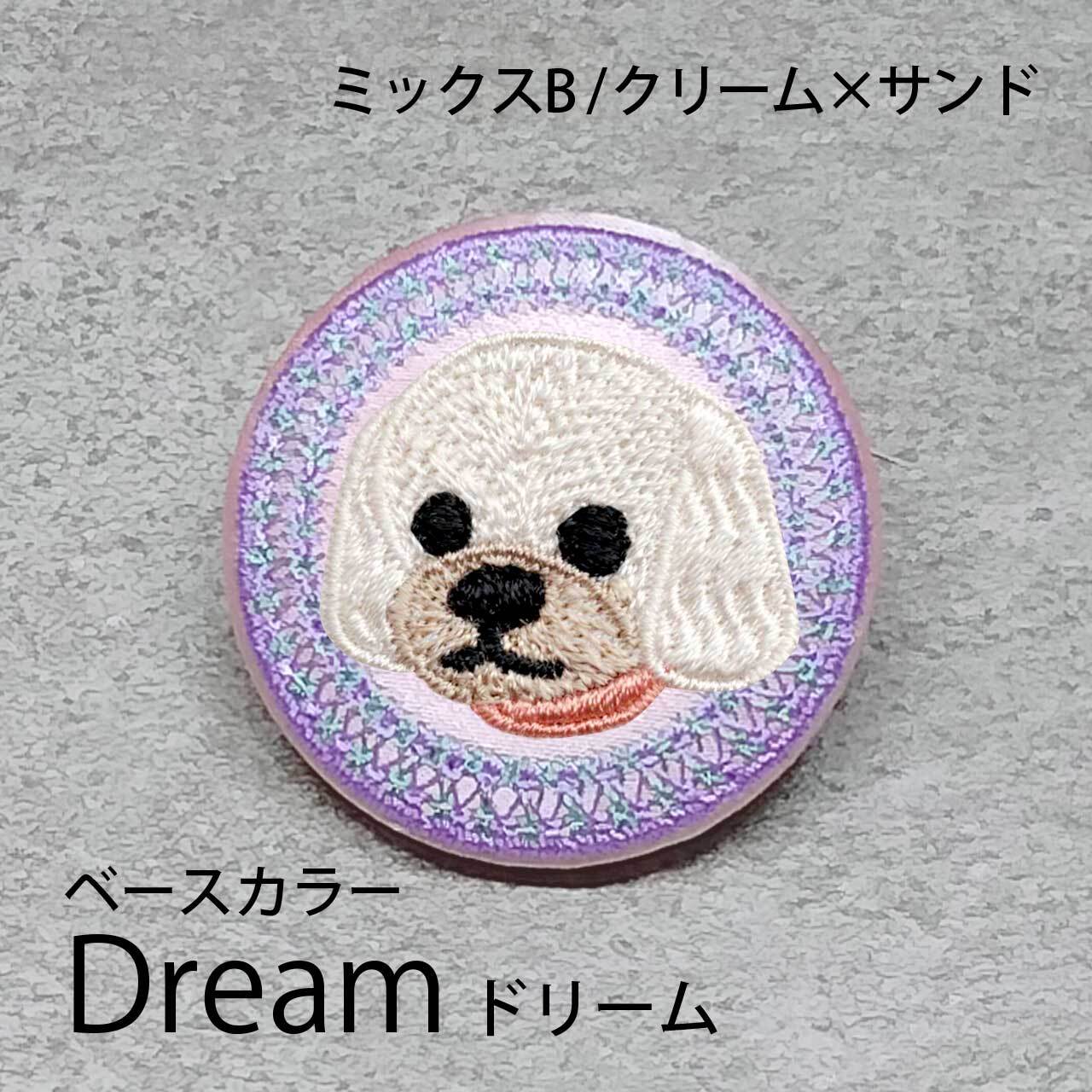 サテン生地にクリームサンドのミックスBを刺繍したアイテム。