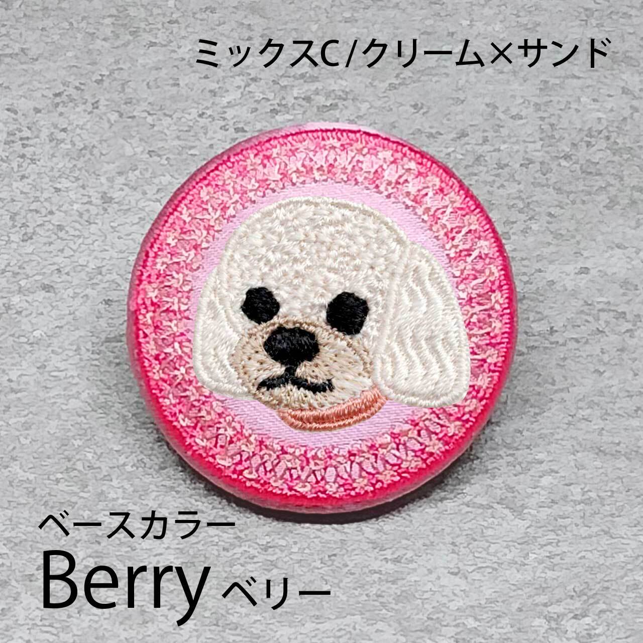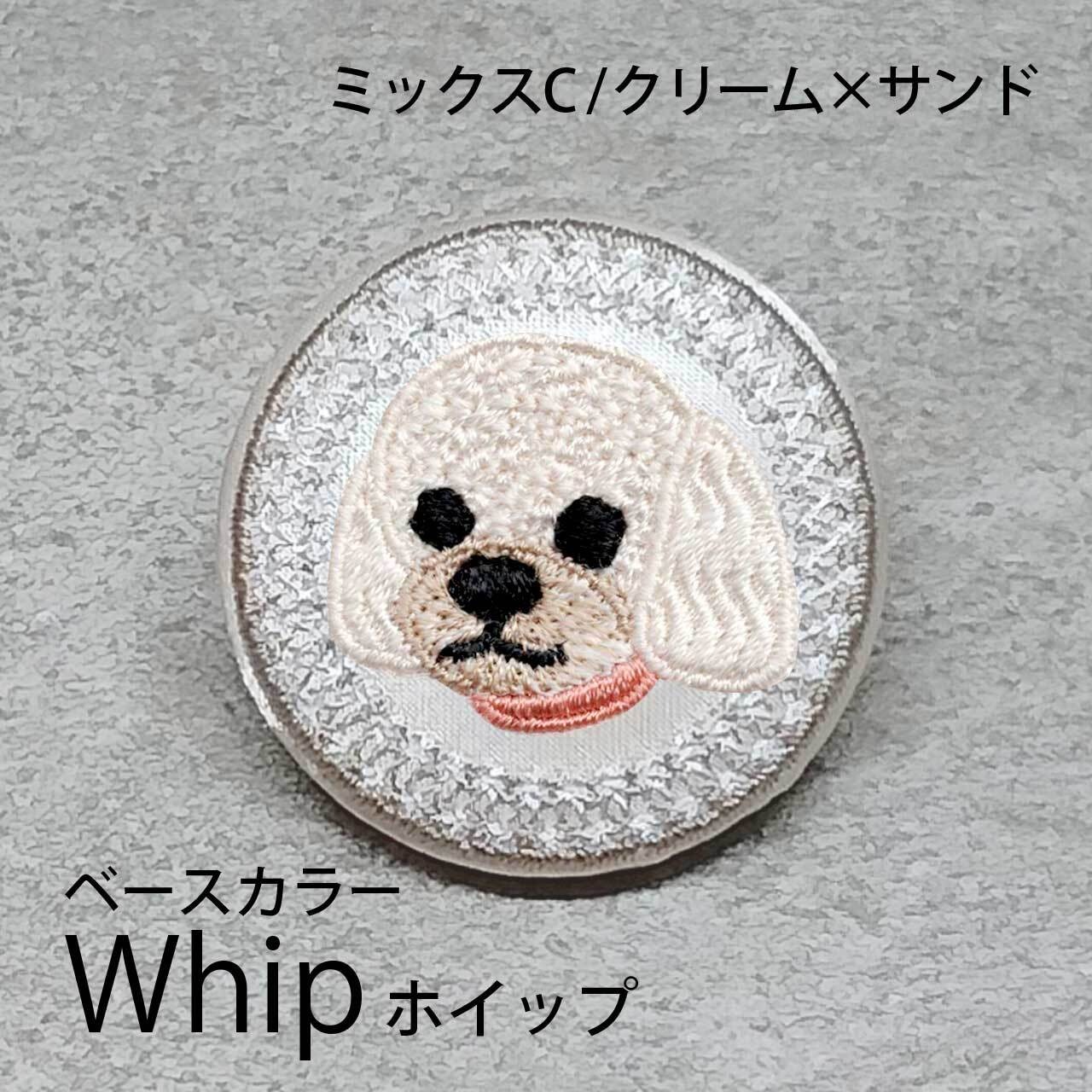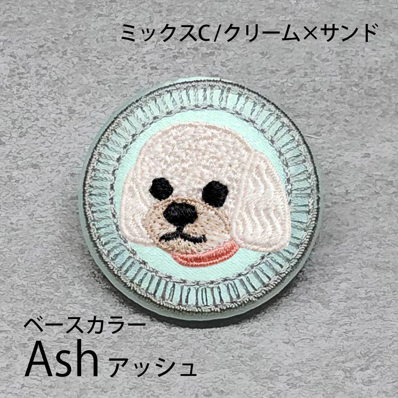 サテン生地にクリームサンドのミックスCを刺繍したアイテム。