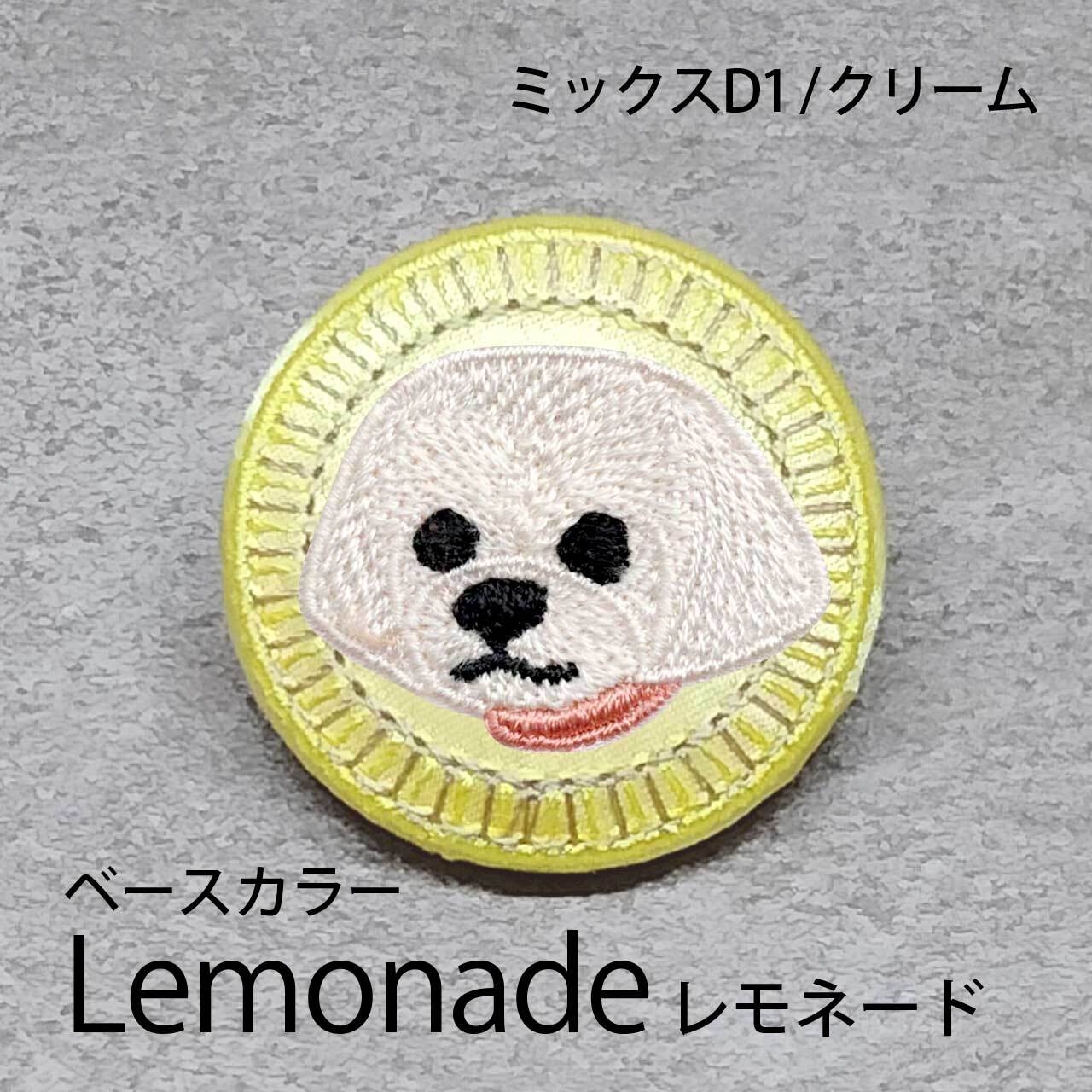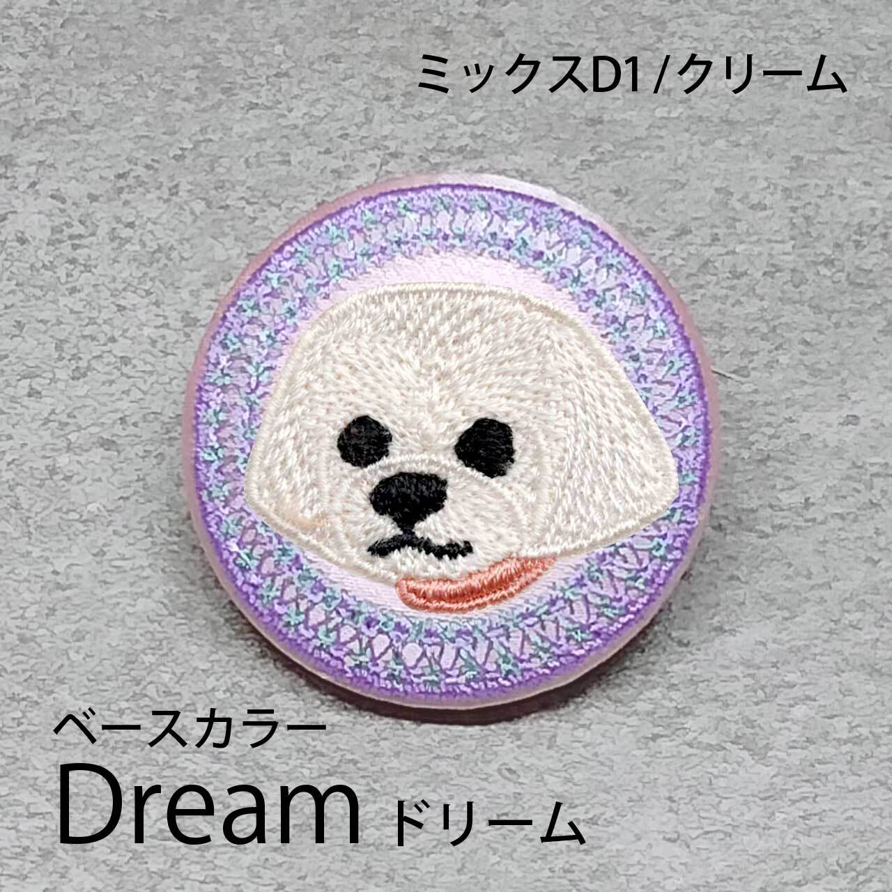 サテン生地にクリームのミックスD1を刺繍したアイテム。