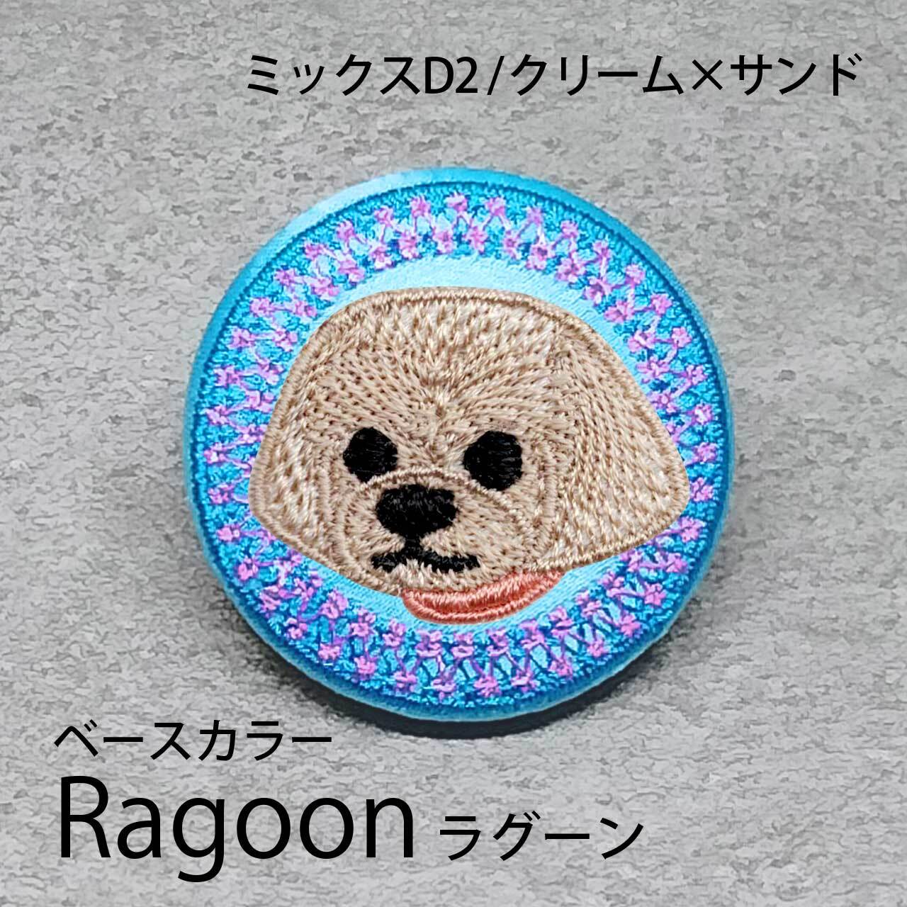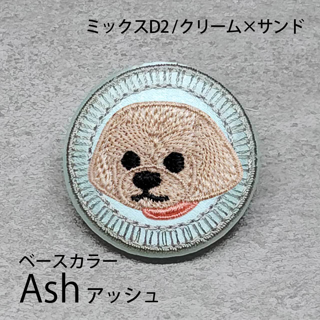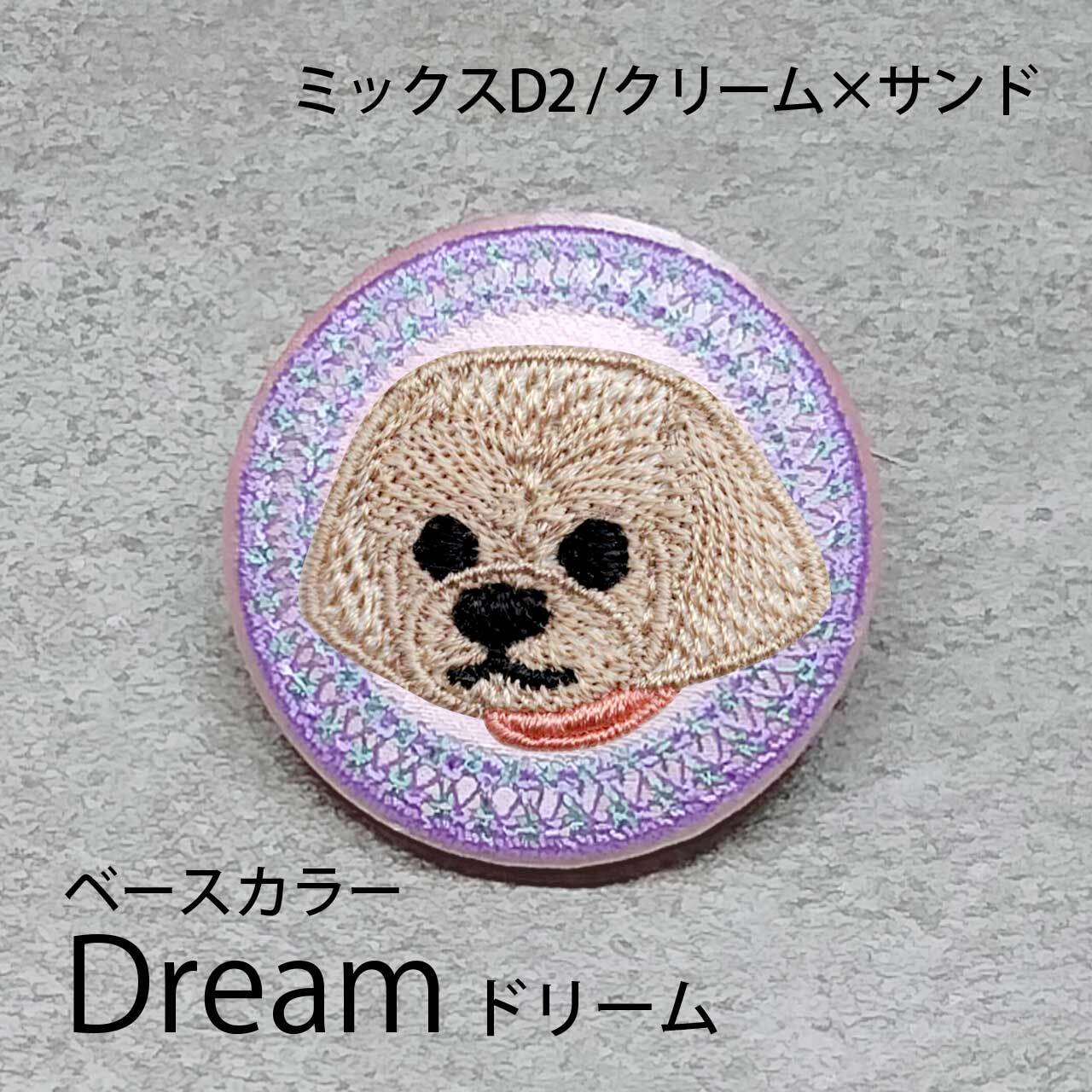 サテン生地にクリームサンドのミックスD2を刺繍したアイテム。