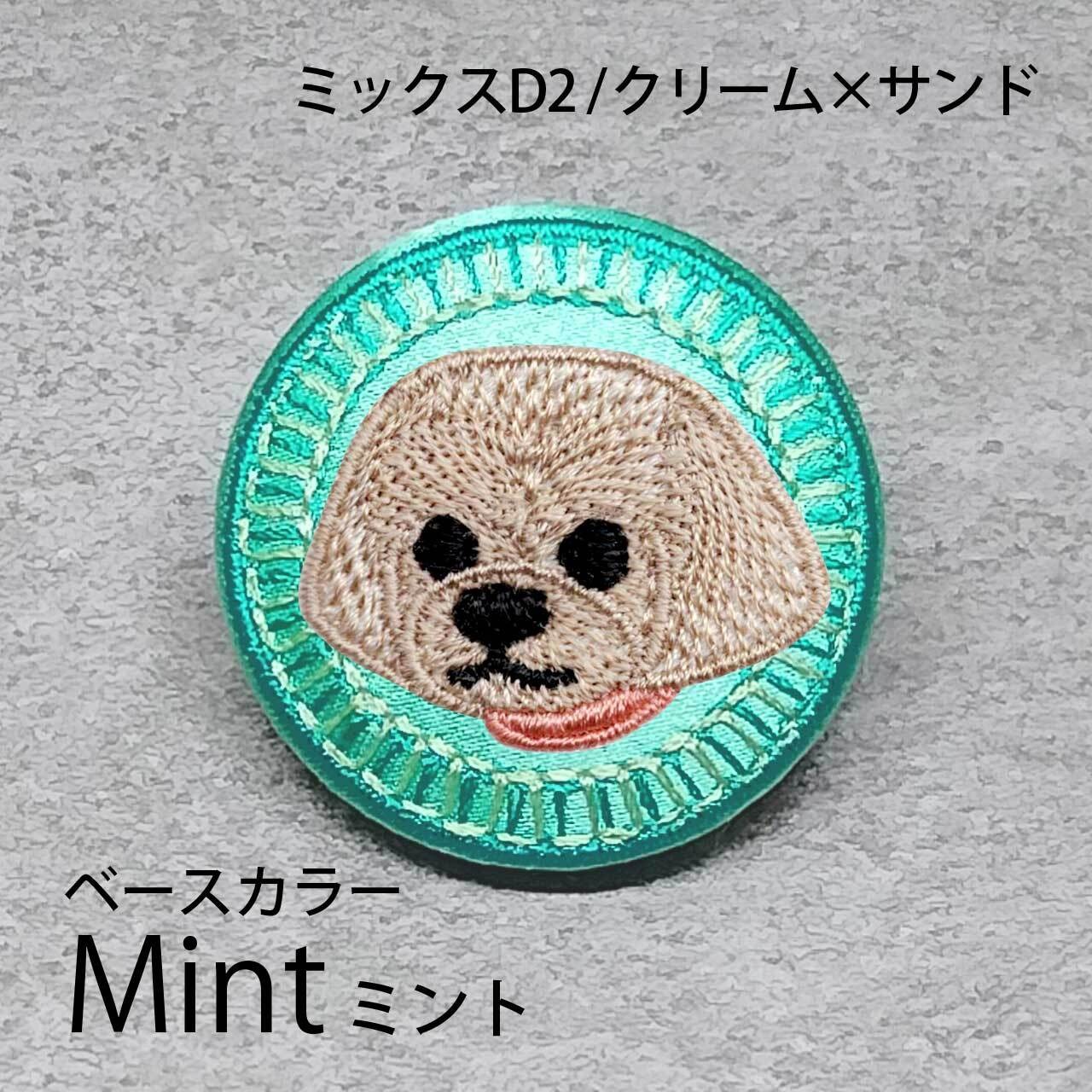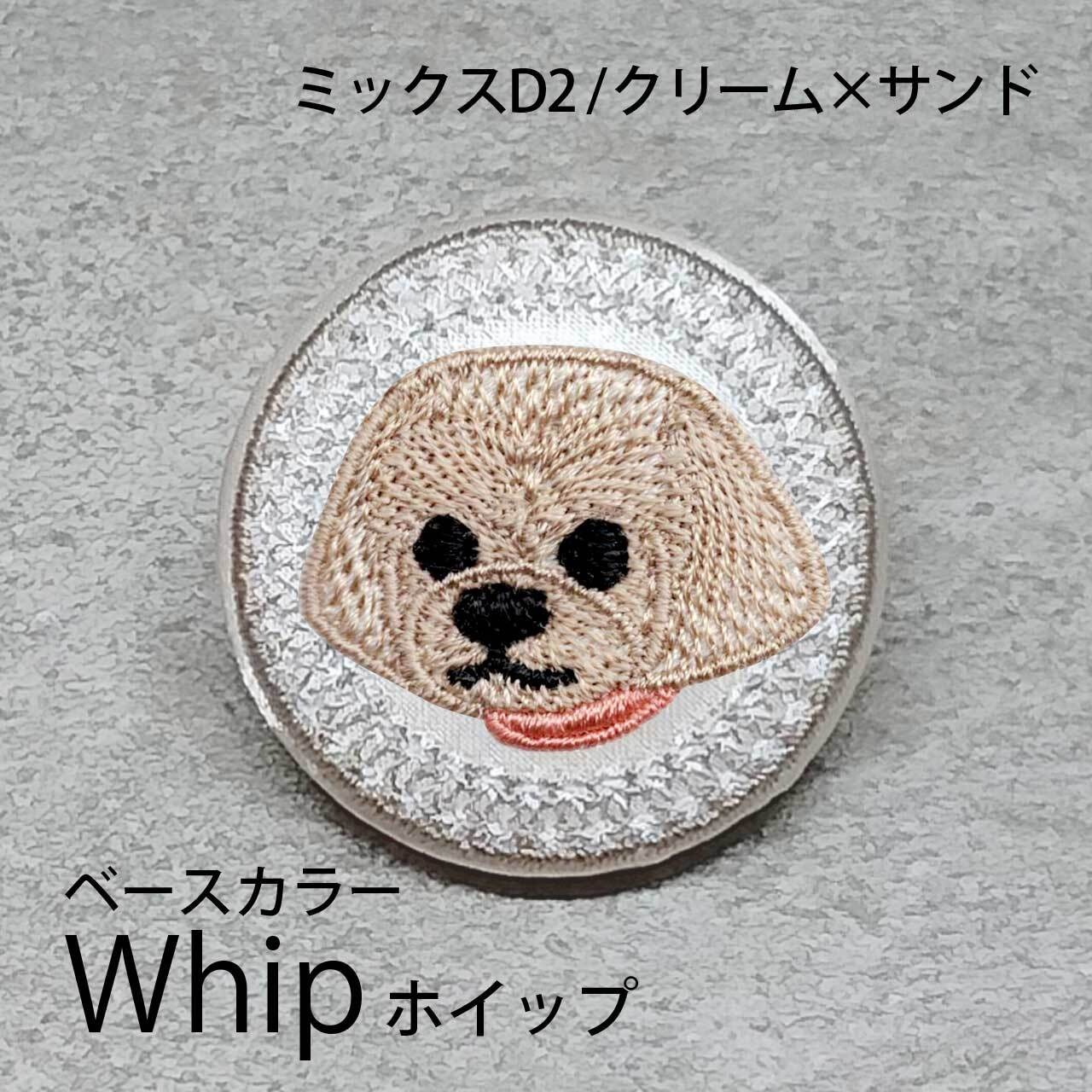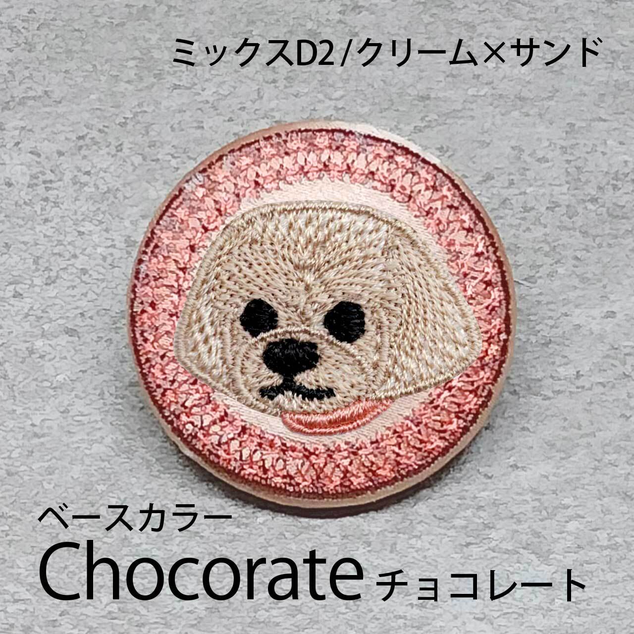 サテン生地にクリームサンドのミックスD2を刺繍したアイテム。