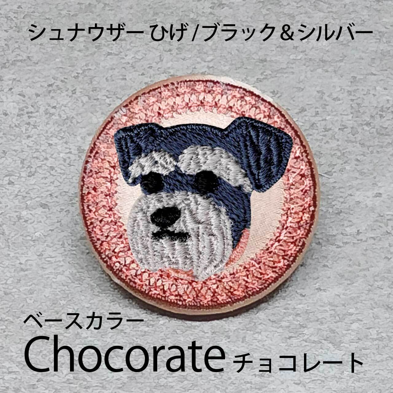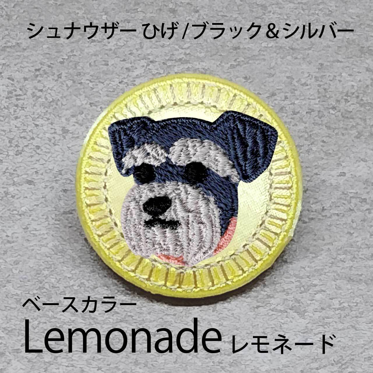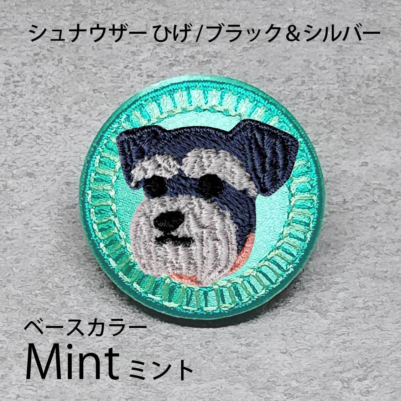 サテン生地にブラック&シルバーのシュナウザーひげを刺繍したアイテム。
