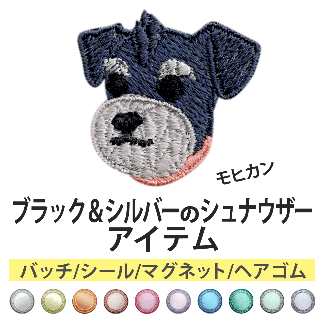 サテン生地にブラック&シルバーのシュナウザーモヒカンを刺繍したアイテム。