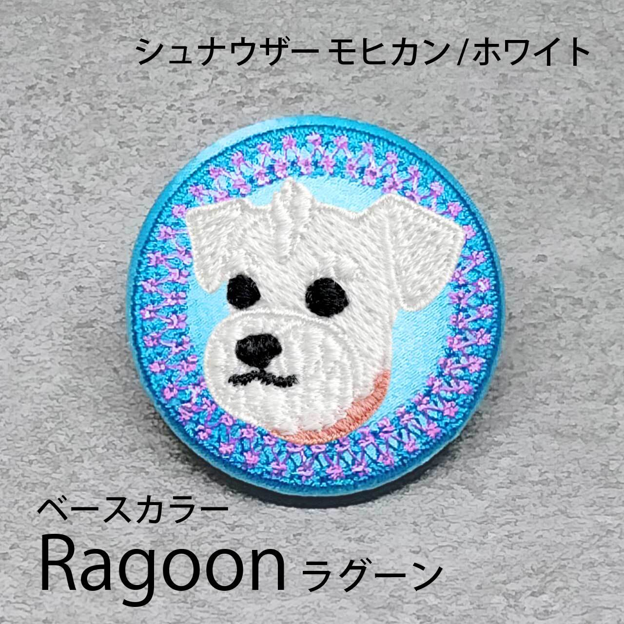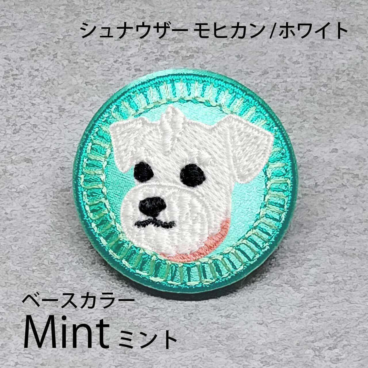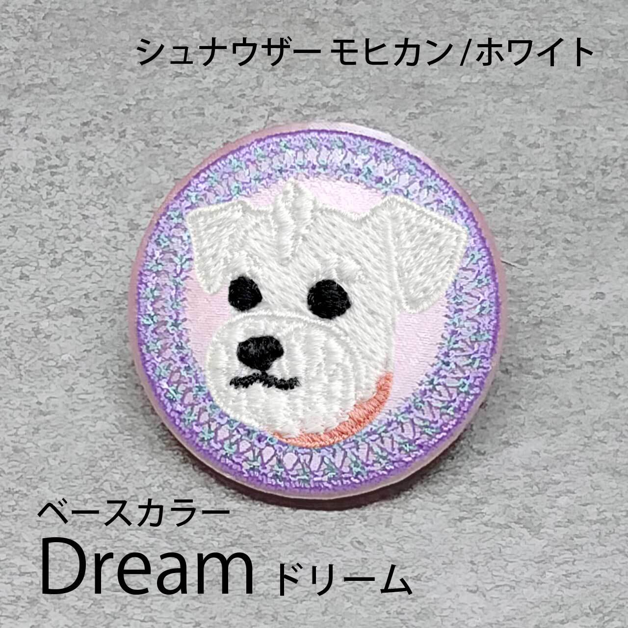 サテン生地にホワイトのシュナウザーモヒカンを刺繍したアイテム。