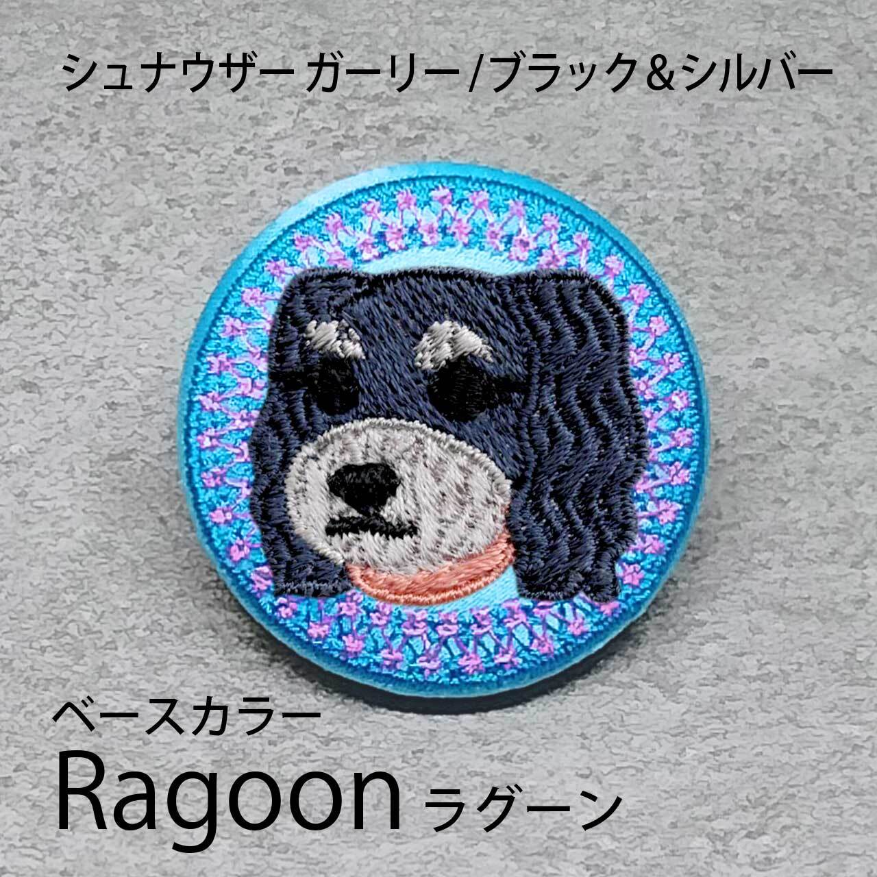 サテン生地にブラック&シルバーのシュナウザーガーリーを刺繍したアイテム。