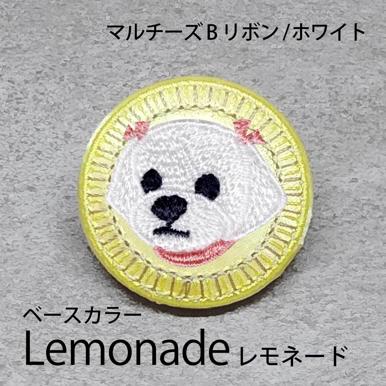 サテン生地にマルチーズBリボンを刺繍したアイテム。