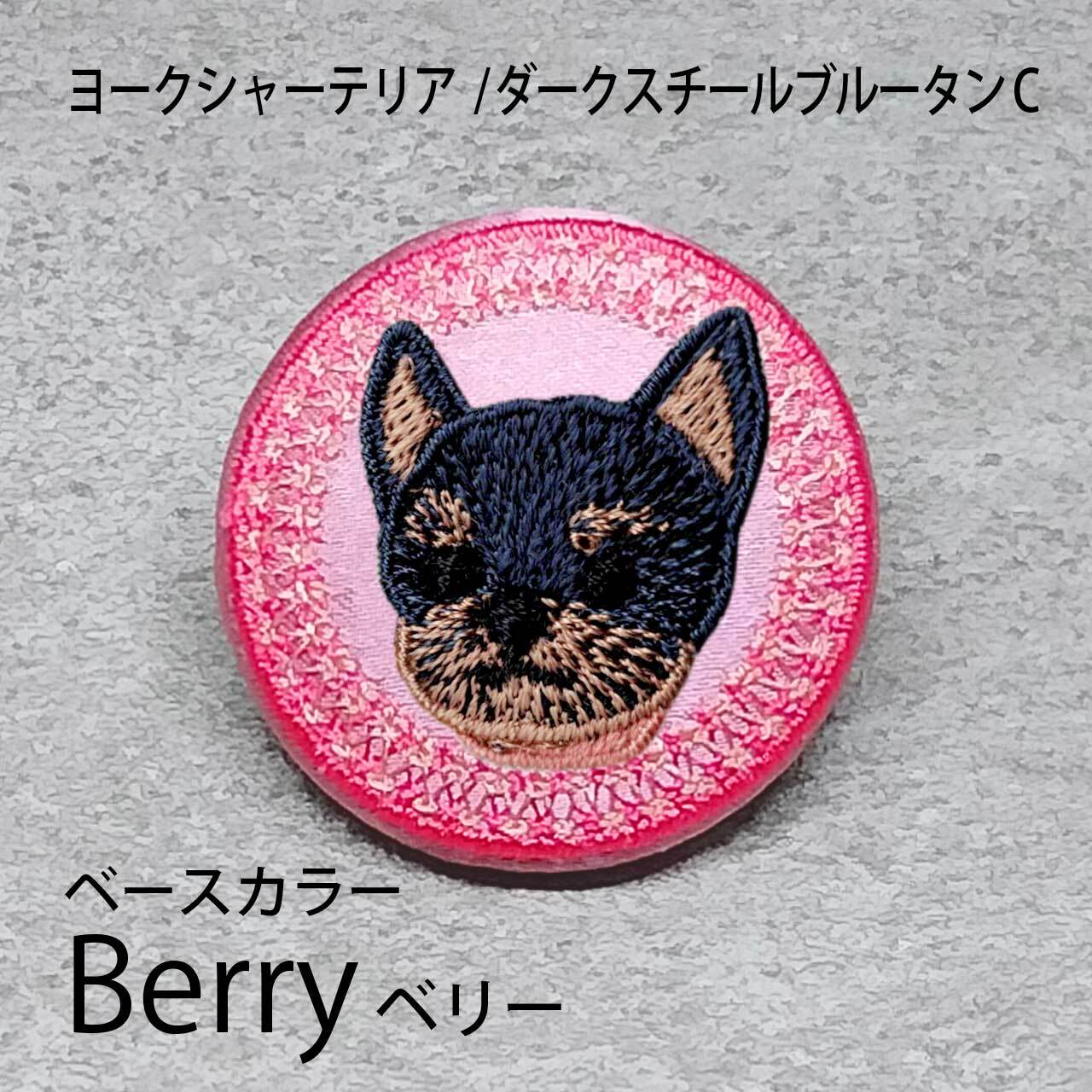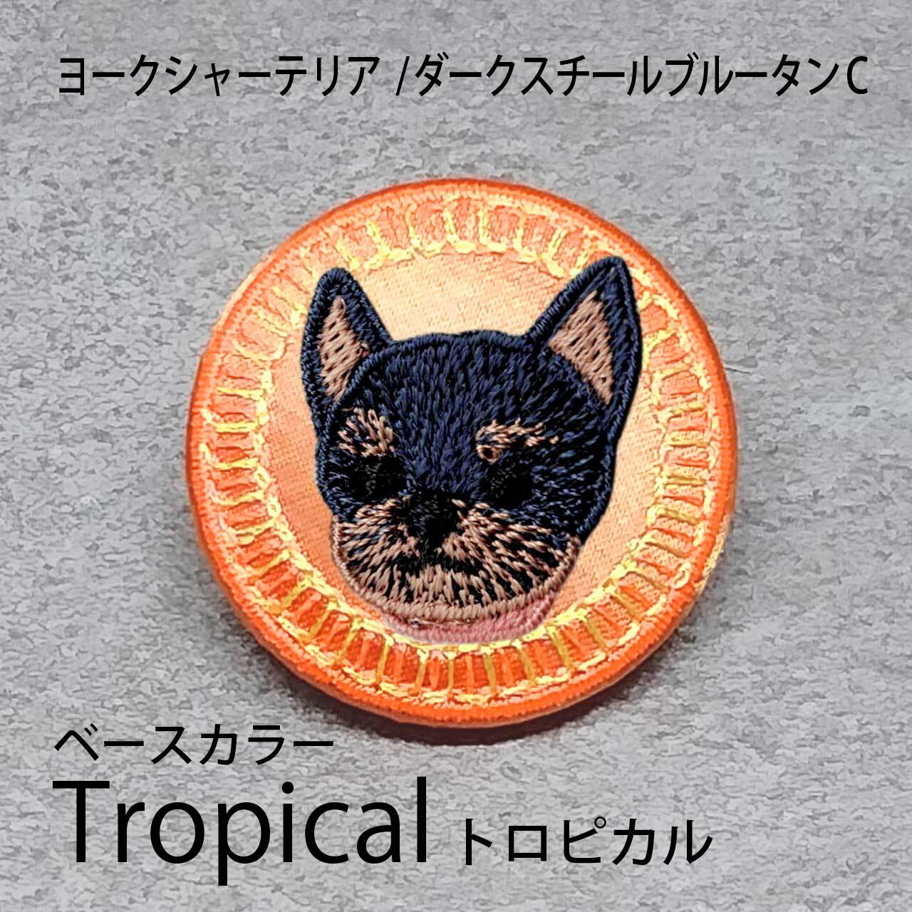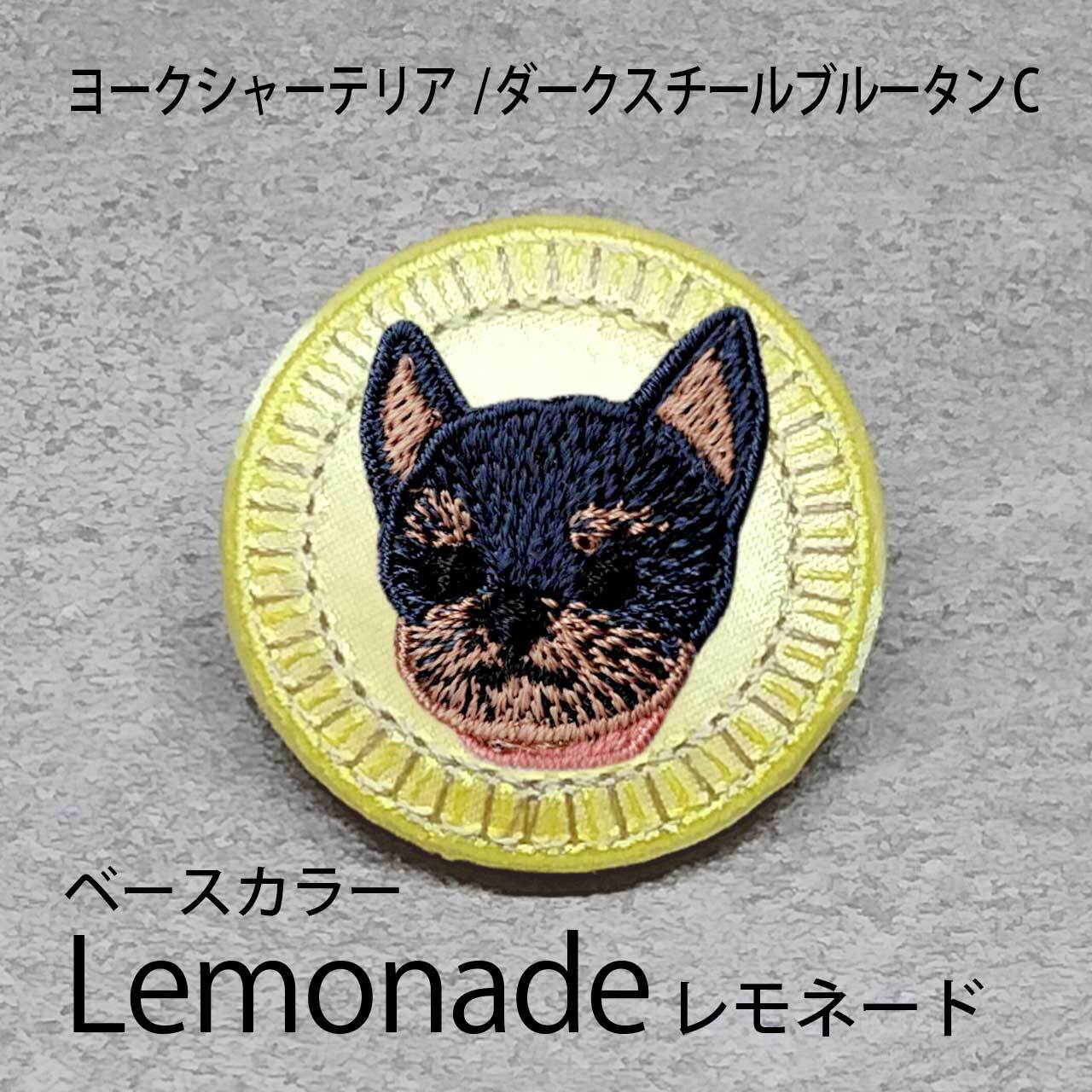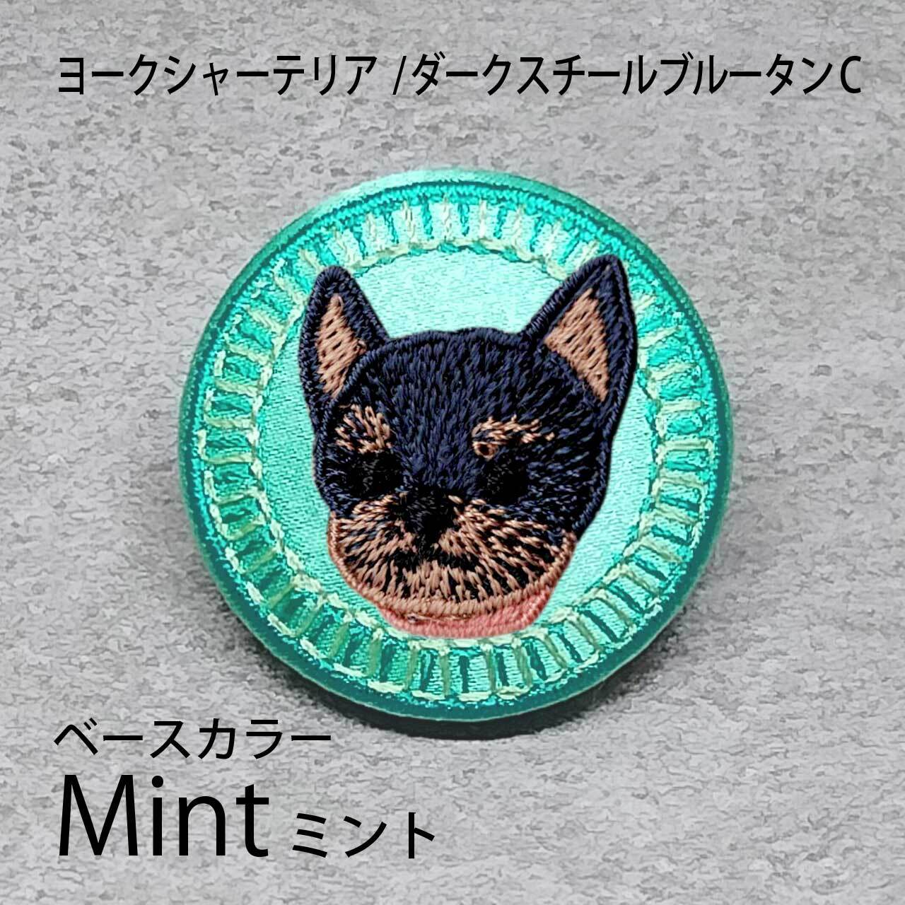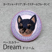 サテン生地にダークスチールブルータンCのヨークシャーテリアを刺繍したアイテム。